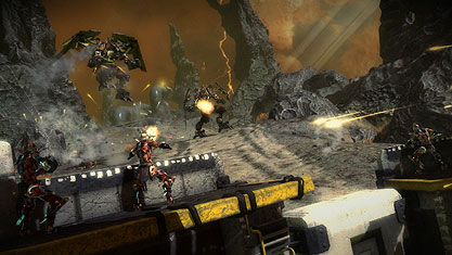 Neu bei Starhawk ist das sogenannte Build’n Battle System, womit man seine Basis nach seinen Vorstellungen umbauen kann. Denn jeder Spieler hat Rift Energie, die er durchs Töten von Gegner erhält und kann diese zum Bauen von Türmen, Airhawkstationen oder Mauern nutze. Als Beispiel wurde ein intensives Gefecht gezeigt, in dem einer der Spieler dann vor sein Team eine schützende Mauer gebaut hat, auf der auch noch genügend Waffen vorhanden waren, um das andere Team dann auszuschalten. Um aber Mitglieder daran zu hindern völlig sinnlose Gebäude zu bauen, gibt es ein System, dass solchen Spielern dann die Baufähigkeit für bestimmte Zeit entzieht. Ebenfalls wichtig ist, dass Spieler wissen, wo als nächstes ein Gebäude erscheint. Denn anders als bei den Siedlern werden die Gebäude nicht erst lange gebaut, sondern werden direkt aus dem Himmel abgeworfen und machen unter sich alles dem Erdboden gleich. Um damit aber nicht reihenweise Gegner zu plätten, können diese sehen, wo man ein Gebäude baut, um notfalls noch genügend Zeit zu haben um zu verschwinden. Wer aber nicht aufpasst, wird natürlich geplättet. Neu ist übrigens auch, dass die Airhawks nicht nur reine Flugzeuge sind, sondern sich am Boden in bester Transformers-Manier zu laufenden Robotern verwandeln, die ziemlich schwer zu besiegen sind. Cool ist auch, dass besiegte Airhawks in tausende von Stücken zerfallen und diese Trümmer andere Spieler auch töten können, für welche man dann auch noch Rift Energie erhält. Interessante Anekdote am Rande: Um das Balancing und andere Mechanismen des Spiels auszutesten, gibt es regelmäßig interne Turniere zwischen z.B. Entwicklern und Designern und damit diese sich auch wirklich ins Zeug hängen und Teamplay im Vordergrund steht, erhält das Entwicklerteam eine Prämie von rund 100$. Denn erste Erfahrungen haben gezeigt, dass die Mitarbeiter sich ansonsten teilweise ziemlich egoistisch verhalten haben oder einfach nicht bei der Sache dabei waren. Seit der Prämie sollen aber echte Kämpfe daraus geworden sein. Passend dazu hat man übrigens auch ein neues Turniersystem und Clansystem, sowie einen Coop-Modus eingebaut.