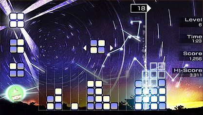 Fans von Tetris und anderen Puzzlespielen, sollten Lumines Electronic Symphony im Auge behalten. Vom Gameplay her ähnelt es ein wenig den Tetris Spielen, da man auch hier Klötzchen zusammenbaut. Jedoch nimmt hier die Musik einen wichtigen Part ein, denn indem man sich der Musik anpasst, kann man Punkte sammeln, was dafür sorgt, dass das Spiel mit einer großen Liste an einzigartigen Musikstücken ausgerüstet ist. [Video]