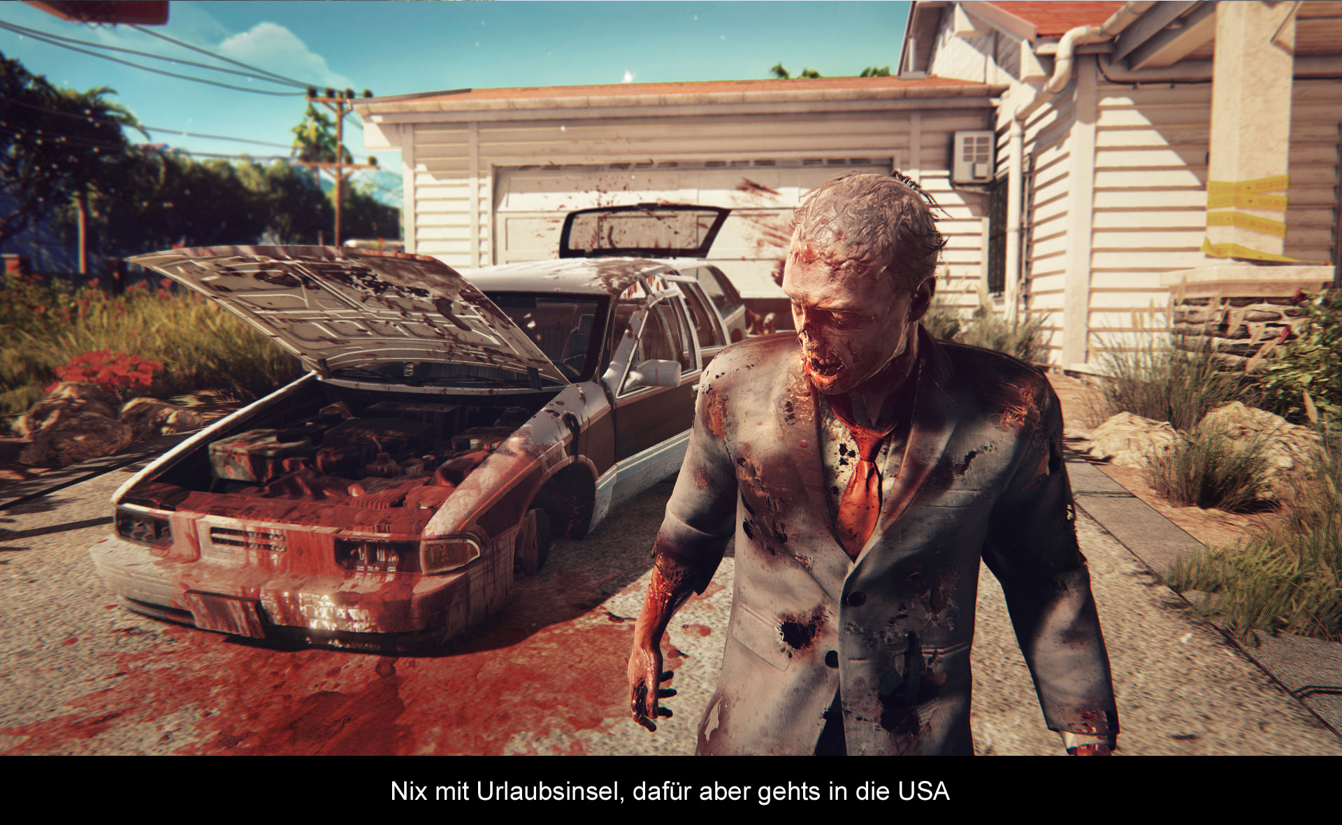 A: Dead Island war ja im Ton nicht ganz gleichmäßig. Es hatte natürlich seine düsteren Momente, aber auch sehr viele schöne, positive Momente. Es war halt nicht das klassische Zombiespiel. Und wir haben jetzt versucht uns in eine Richtung zu bewegen und am meisten Feedback haben wir von den Leuten bekommen, dass es halt Spaß gemacht hätte, in einer positiven Welt zu spielen. Dead Island hat ja auch in einem Urlaubsressort gespielt und nicht in einem dunklen Verlies. Es war halt auch da super schön. Und deswegen gehen wir eher in die positive Richtung und haben als Kredo „Bright and Beautiful“ und eben diesen lighthearted Tone. Aber was auch entscheidend ist. Wir werden jetzt nicht zum Slapstick, Parodie Spiel, in dem man mit einem pinken Kostüm herumläuft. Wir sehen es halt positiv, da man nun eine zweite Chance im Leben erhält und die Helden machen was daraus und sind auch nicht deprimiert. Sie versuchen ihr Leben einfach weiterzuleben und die Situation auf eine gewisse positive Weise auszunutzen.