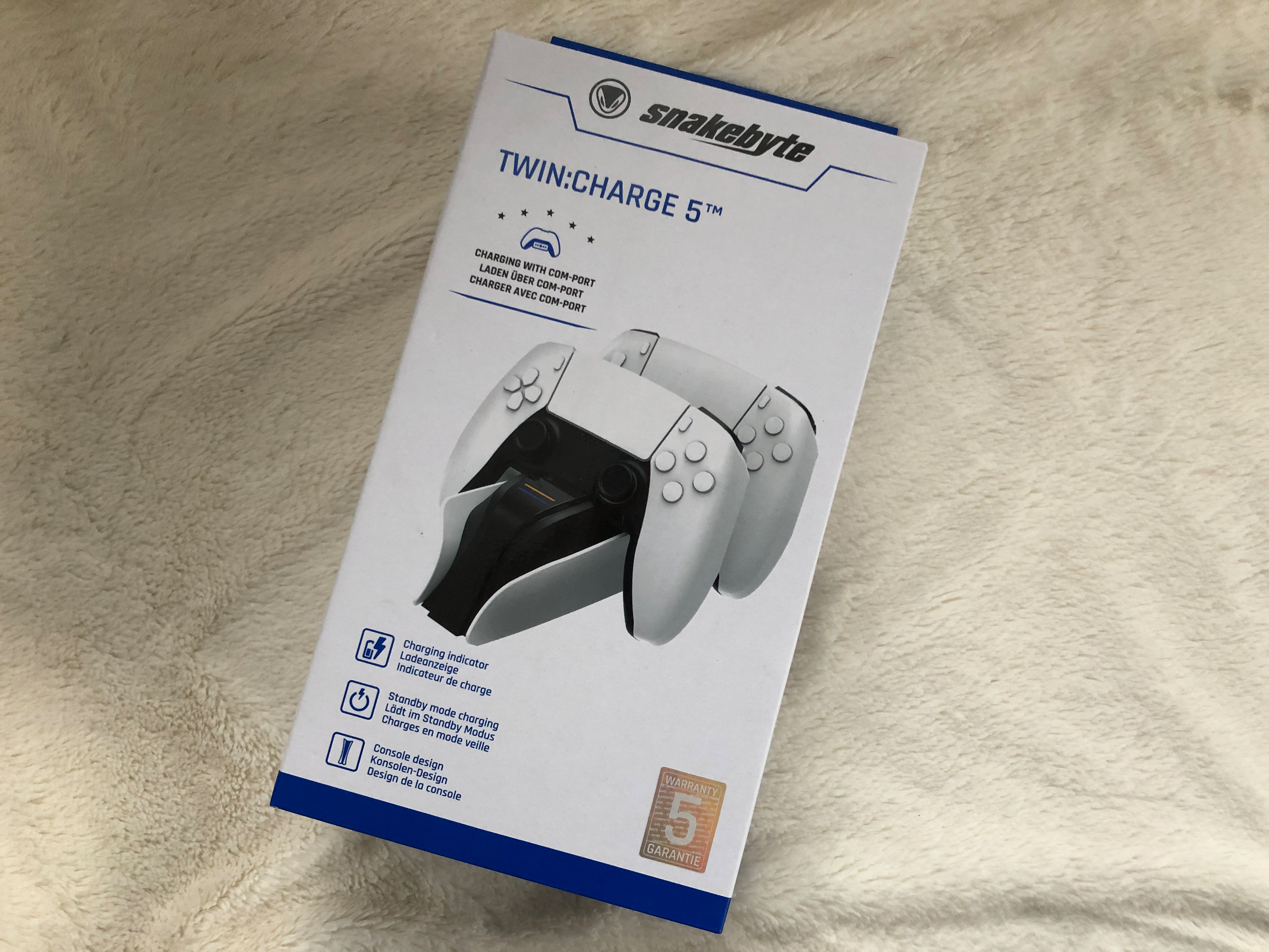 Die obere Frage sollte man sich natürlich zu allererst stellen. Für mich war klar: Wegen der Ordnung! Ich möchte kein kurzes Kabel permanent an der Konsole (auch noch an der Front) herumhängen haben. Und jedes Mal wegräumen und dann wieder herausholen – nee zu umständlich. Also musste eine komme ich um eine Ladestation nicht umher. Da die von Sony nicht erhältlich ist, habe ich mich nach Alternativen umgesehen. Neben zahlreichem noname Alternativen „made in China“ gab es auch ein paar Sachen, in die ich etwas mehr Vertrauen habe - Snakebyte zum Beispiel, die es als Zubehörhersteller schon eine ganze Weile gibt. Auch sieht die Twin:charge 5 Ladestation optisch ansprechend aus. Sie passt vom weiß / schwarzen Design zur PS5 Konsole. Zudem gibt es zwei zweistufige LEDs für den Ladezustand, denn man kann gleichzeitig zwei DualSense aufladen. Wie beim Original von Sony erfolgt der Ladevorgang über den Com-Port des Controllers und die Pin-Aufnahmen sahen auf den Bildern auch recht robust aus. Überspannschutz gibt es auch noch dazu. Und der Preis von 19,99€ geht auch in Ordnung.