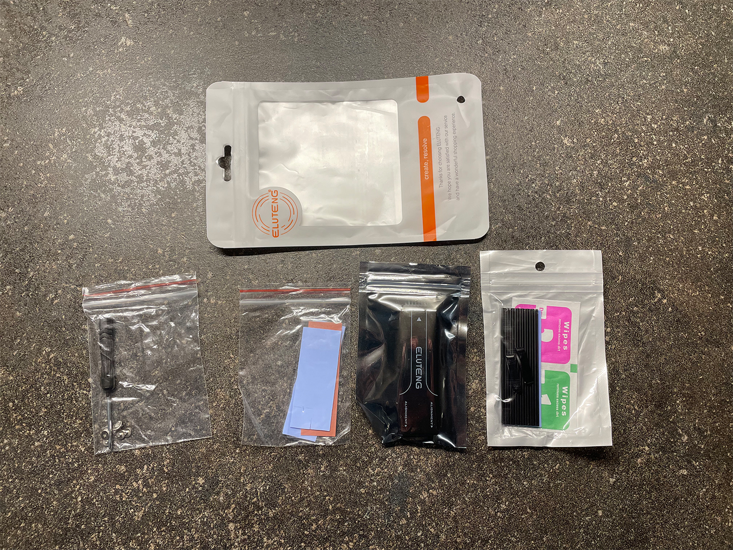 So sollte es aussehen - der Abstandshalter kommt auf die Platine und unter die SSD / Kühler Kombination, um Druck beim verschrauben zu nehmen.