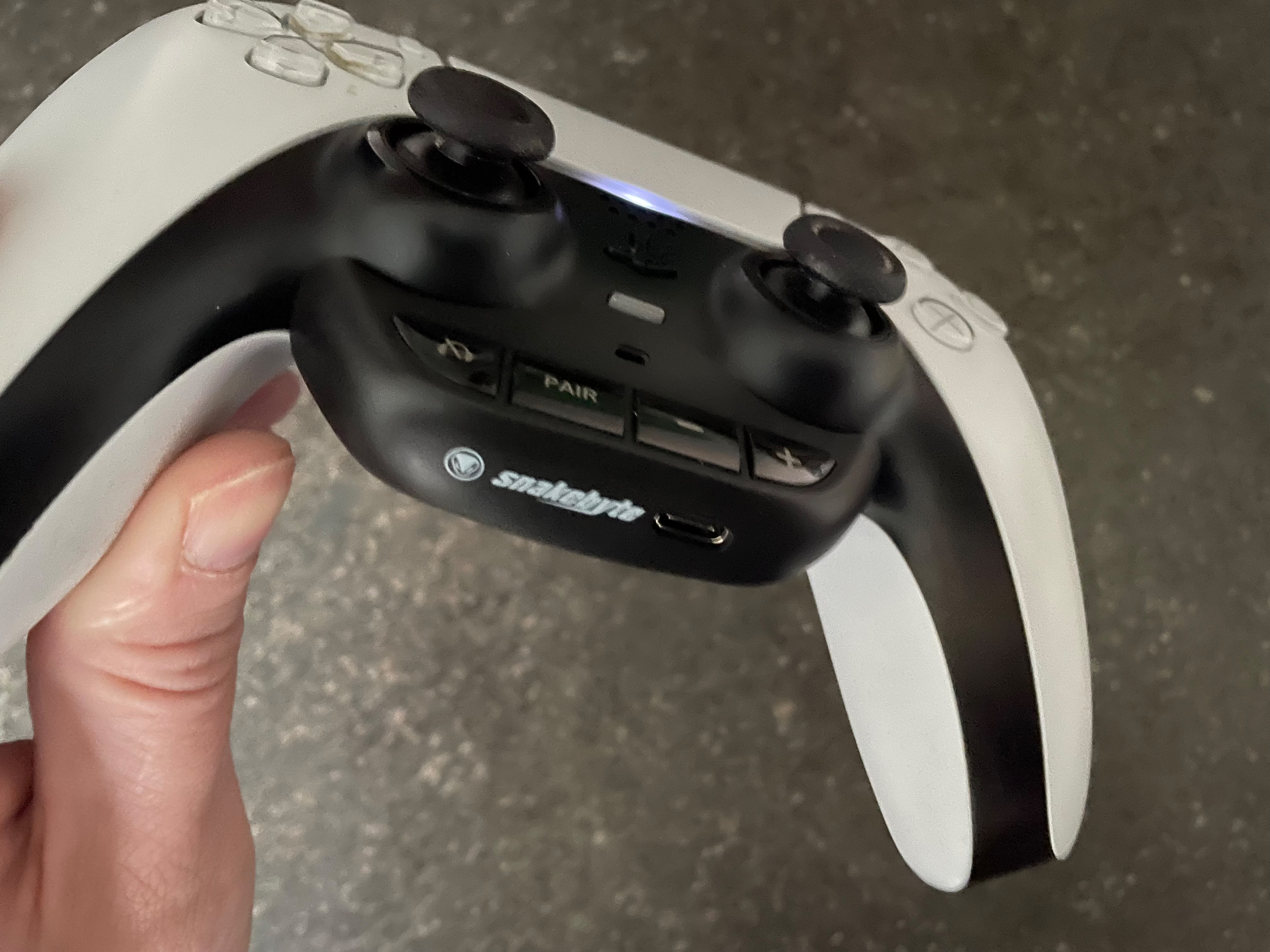 Snakebyte hatte mit dem BT Headset:Adapt 5 eine wahrlich geniale Idee. Mittels eines Adapters betreibt man das Bluetooth Dongle schlichtweg am DualSense anstatt an der Konsole. Wie das geht? Das Zubehörteil wird kurzerhand an den 3,5mm Klinkenanschluss des Joypads angeschlossen. Den Dongle steckt man an den USB-C Anschluss des Adapters. Über die Tasten kann man das Dongle mit dem Headset pairen bzw. die Lautstäre regulieren, oder ausschalten.