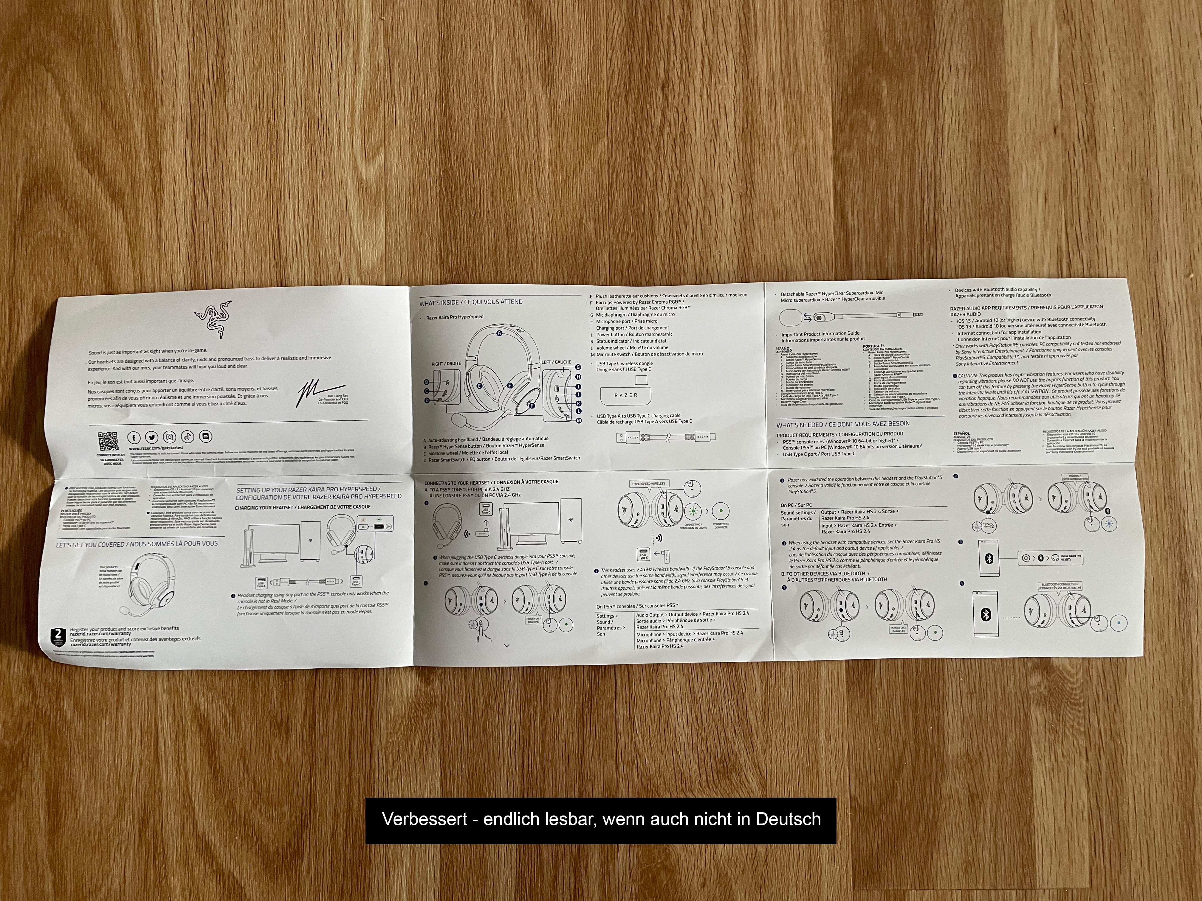 Noch ein Wort zur Bedienungsanleitung – ein Kritikpunkt beim Vorgängermodell. Diese wurde tatsächlich verbessert. Allerdings sind nur noch zwei Sprachen abgedruckt – Englisch und Französisch. Dafür aber jetzt in einer lesbaren Schriftgröße mit passenden Bildern.