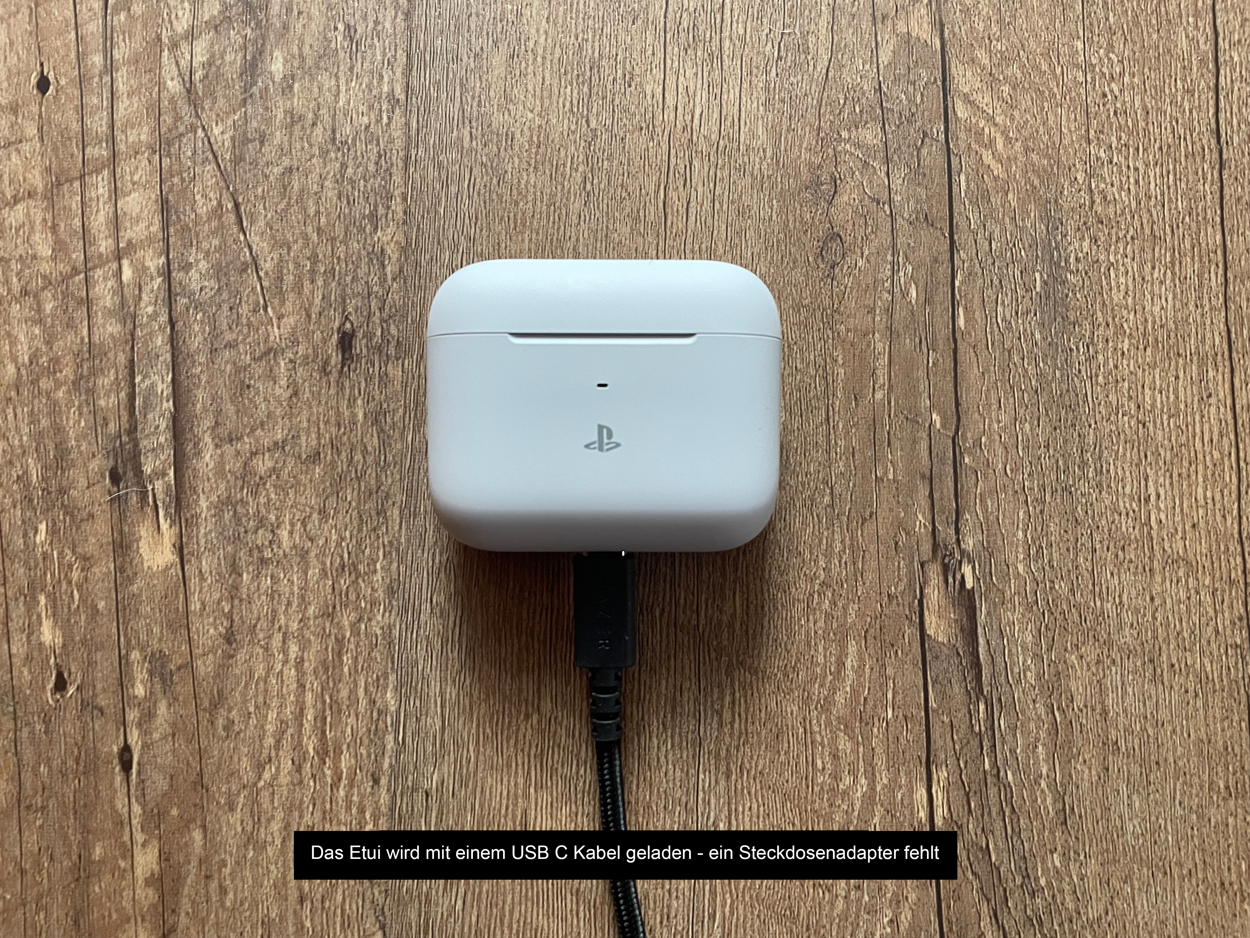 Das handliche Verwahr-Etui sieht nicht nur gut aus, es dient logischerweise auch als Ladestation / Akkuspeicher. Auf der Rückseite befindet sich ein USB C Port, in den das beigelegte Kabel (USB C zu USB A) passt. Nur ein Steckdosenadapter fehlt. Okay, notfalls kann man das Case aber auch direkt an der PS5 und dem PC laden.