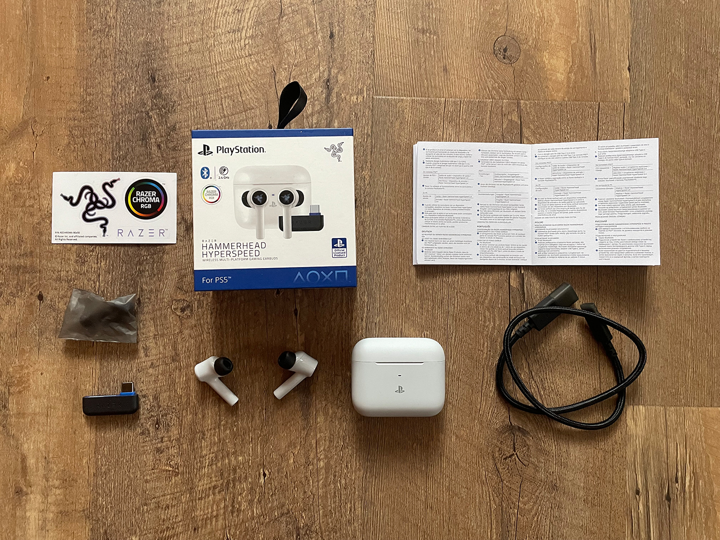 Gerade der letzte Punkt macht den Unterschied. Ich sitze keine 2 Meter vom TV und der Konsole entfernt. Nach einer halben Stunde stockt die Soundwiedergabe und es treten plötzlich Aussetzer auf. Okay, also wechseln wir mal schnell via Geste (drei Mal auf die Außenseite klopfen) in den Bluetooth Modus und verbinden uns dann erneut mit dem Dongle. Denkste! Das erneute Verbinden funktionierte nicht. Also nochmal auf Bluetooth gewechselt und plötzlich gab nur noch ein Stöpsel Sound wieder. Der andere blieb stumm. Was nun? Wieder gewechselt, Dongle händisch aus der PS5 gezogen, erneut reingesteckt, nochmal verbunden und plötzlich hatte ich Sound – nur eben auf dem anderen Ohrstecker. Also habe ich mit der Lupe in die Anleitung geschaut, ob es Hinweise auf so eine Fehlerbeseitigung gibt. Nix da! Weiterhin kurios: Ich konnte zwar auf einem Earbud vom Handy streamen, aber mit der Razer App ließen sich die Stecker überhaupt nicht mehr verbinden. Was half also? Stöpsel in die Box und Deckel runterklappen. Dann schalten sich die Hammerheads automatisch aus. Am nächsten Tag funktionierten die Geräte wieder normal. Auch gab es keine Verbindungsaussetzer zur PS5 und via App ließen sich die Stecker ebenfalls problemlos koppeln. Das nächste Mal aber wieder schon – gleiches Fehlerbild – nach einer halben Stunde begann das Soundstottern und abrupte Störungen kamen dazu. Umschalten brachte wieder keine Besserung (Sound nur auf einem Earbud). Also ausschalten und dann wieder aktivieren, nur war die stotternde Verbindung immer noch vorhanden. Keine Ahnung, woran das liegt: Es war jedoch reproduzierbar. Auch hatte ich mit den Kaira Pro Headsets nie solche Probleme und die nutzen ja laut technischer Spezifikation die gleiche latenzfreie Wireless Hyperspeed Technologie.