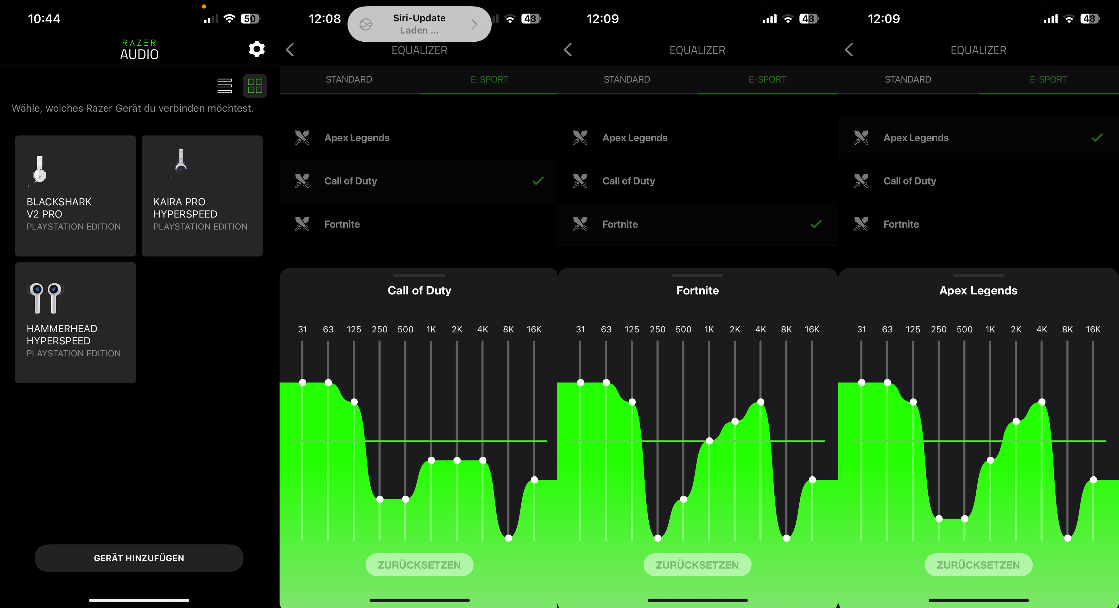 Über einen Equalizer (in der mobilen App) kann man den Sound nach seinen Wünschen anpassen, oder nimmt eine der Voreinstellungen zu Musik oder Film. Mit e-Sports Profis wurden zudem drei Profile zu populären Spielen (Apex Legends, Call of Duty und Fortnite) erschaffen. Ob das jetzt den Unterschied macht, wage ich mal zu bezweifeln, aber mehr Auswahl ist besser als keine.