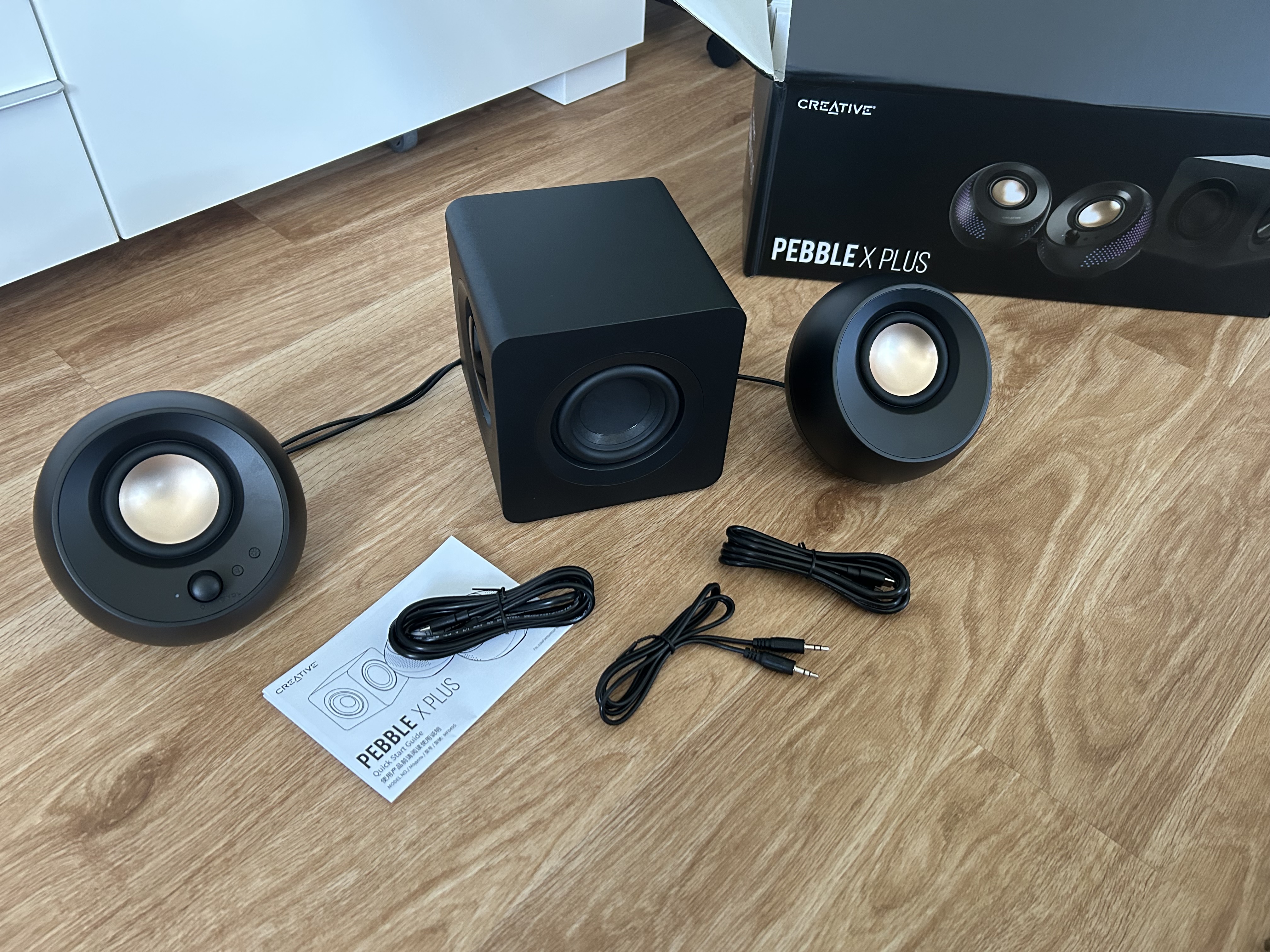 *Die volle Soundkapazität entfaltet das Set nur, wenn man es mittels USB Power Delivery Adapter an eine reguläre Steckdose anschließt. Mit dem beigelegten USB-C Kabel bekommt man nur eine Ausgangsleistung von 15W RMS und 30W Spitze geboten. Mit einem Steckdosenadapter (der mindestens 30W Leistung besitzt) verdoppelt sich die Leistung auf 30W RMS und 60W Spitze und das hört man! Der Sound wirkt voluminöser und die Bässe sind kraftvoller. Bleibt also die Frage, warum Creative keinen PD-Adapter beigelegt hat? Wahrscheinlich aus Kostengründen: Immerhin ist das Set mit 139,99€ eher im niedrigeren Preissektor eingestuft. Andererseits muss ich auch sagen: Ich besaß keinen Adapter mit mind. 30W und USB-C Anschluss. Also musste ich mir noch bei Amazon ein No Name Produkt für knapp 10€ kaufen. Bei Creative kostet das günstigste Modell mit 67W rund 42€.