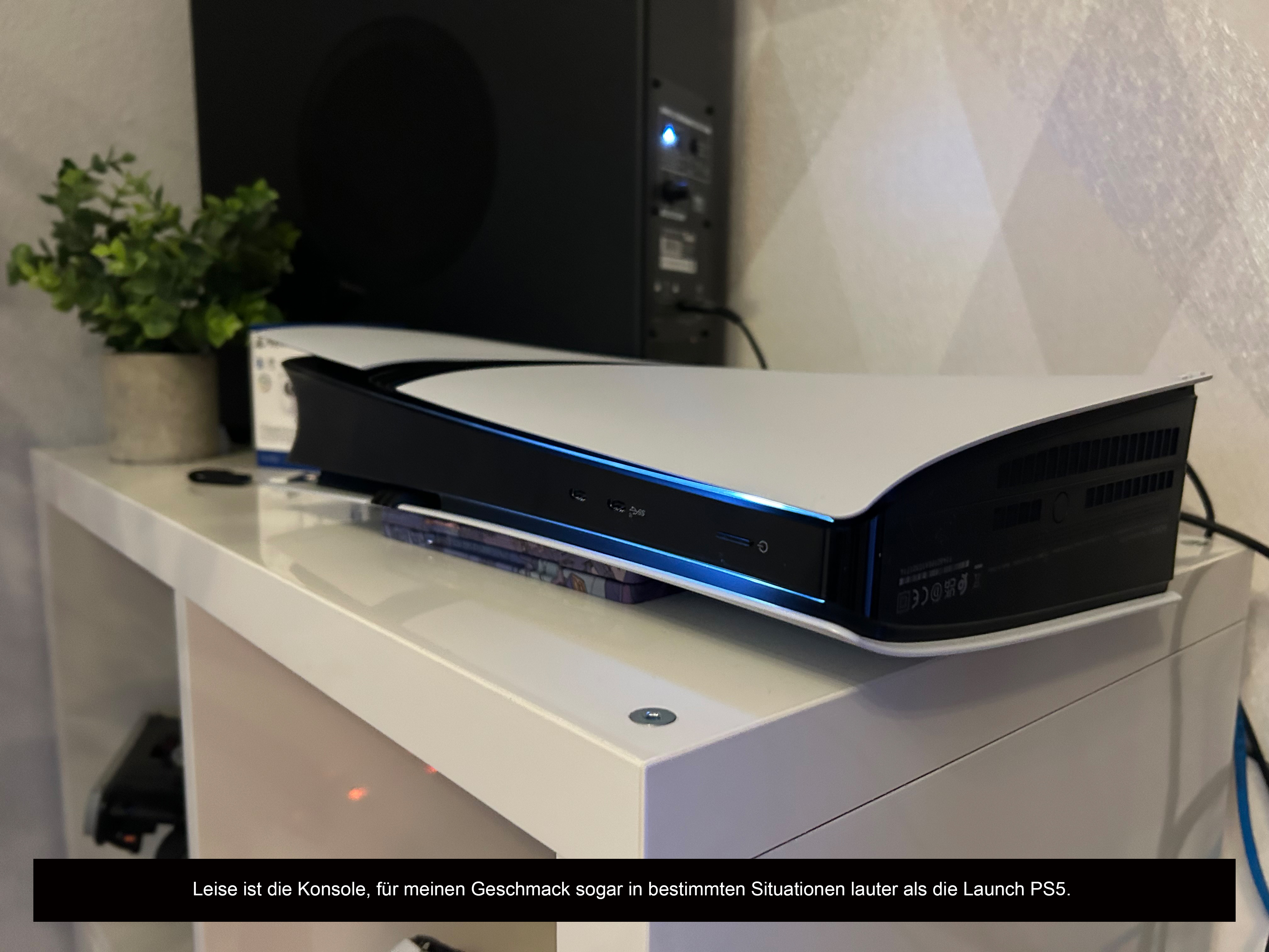 Wenn man schon so viel Geld für eine Konsole hinlegt, erwartet man wenigstens eine gute Verarbeitung, aber mal ehrlich: Die PS5 Pro sieht billig aus, fühlt sich billig an und die Konsole ist obendrein noch relativ laut – zumindest nicht leiser als eine Launch PS5. Auch existiert wieder die Lüfterlotterie aus Delta und Foxconn Lüftern – kleiner Hinweis: Beide Firmen liefern qualitativen Schott ab, nur bei den einen gibt es noch unschönes Spulenfiepen dazu! Ansonsten gehen (zumindest bei mir) die Lüftergeräusche unter, wenn die Action am TV kracht. Stellt man den Ton aber aus und die restliche Umgebung ist ruhig, dann hört man die Lüfter der Konsole bereits im Menü allzu deutlich. Für den ausgerufenen Preis ist das ein erbärmliches Ergebnis, reiht sich aber in den qualitativen Abstiegsprozess ein, den Sony mit der PlayStation seit der PS4 Einführung beschreitet.