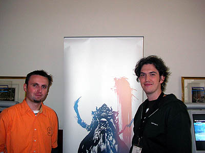 Nach unserem kurzen (20 Minuten und da haben wir schon überzogen) Gespräch mit Herrn Minagawa, wurden wir noch von der (weiter hinten sitzenden) Square Enix UK Belegschaft (alles Japaner) verabschiedet und bekamen einen Goodiebag (Final Fantasy XII Poster, Final Fantasy XII limitierte 4 CD Soundtrack Box und Final Fantasy XI Xbox360 Spiel) überreicht (Yeah!). Als kleine Anmerkung sei erlaubt, dass bei der Square Enix Gefolgschaft zwei außerordentlich hübsche Frauen dabei waren, die eher an japanische Hochglanzpopstars erinnerten, als an typische Businessladys. Hier fehlte Kollege Shagy, der sich sicherlich keinen Ast gemacht hätte und die beiden Mädels für unser Fotoalbum aufgenommen hätte. Als nächstes stand erstmal eine kleine Malzeiten mit teuren Appetithäppchen an und danach das ausführliche Anspielen des Rollenspiels.