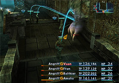 Zu allererst, das Kampfsystem finde ich gewöhnungsbedürftig. Von den bisher bekannten gemütlichen Rundenkämpfe (Active Time Battle hin oder her) ist nicht mehr viel übrig geblieben. Zwar lässt sich auch Final Fantasy noch in einem annähernd rundenbasierten Modus spielen, aber man merkt sofort, dass die Intention der Designer auf der Echtzeitkomponente (hier als Active Dimension Battle bezeichnet) lag. Bevor ihr jetzt jedoch denkt, dass Final Fantasy XII zu einem Diablo Hack & Slay Klon mutiert ist, kann ich euch beruhigen, denn davon ist der Titel nämlich immer noch meilenweit entfernt. Aber wie funktioniert nun dieses neue Active Dimension Battle System? In erster Linie kontextbasiert – das heißt, ihr könnt euren Kämpfern in einem speziellen Untermenü bis zu zwölf Befehle erteilen (je nachdem welche Fertigkeiten ihr aufgelevelt habt), die diese dann je nach Situation einsetzen. Zum Beispiel greift eure Dreiergruppe (maximale Mitstreiter in einer Gruppe) ein Monster an, jeder mit seinem spezifischen Angriff. Ähnlich wie bei den Active Time Battles werden die Attacken immer nur nach einer bestimmten Zeit ausgeführt. Sollte jetzt jedoch wieder erwarten ein Kämpfer mehr als 50% Schaden erleiden, heilt (sofern vorher zugewiesen) ein anderer Charakter diesen automatisch, nur um dann normal weiterzukämpfen. Dieses System kann auch bei Luftgegnern angewandt werden, oder Monstern, die nur auf spezielle Elemente (wie Feuer oder Wasser) ansprechen. Das ist jedoch nur ein kleiner Teil, von dem, was möglich ist. Ihr könnt die Rangfolge der Befehle und die Arten (bis zu drei Sets lassen sich pro Gruppe speichern) kinderleicht wechseln, anpassen und austauschen. Die Möglichkeiten sind enorm und sofern man sich da reingefuchst hat, wird man die Flexibilität zu schätzen wissen. Aber wie gesagt, ohne Morgan, der uns mit Rat und Tat zur Seite stand, wären wir in der kurzen Zeit nie und nimmer hinter das System gestiegen. Da kann man nur hoffen, dass die Tutorials und das Handbuch gut gelungen sind bzw. gut gelingen werden. Abgesehen vom neuen Kampfsystem, erwartet euch auch eine weiterentwickelte Version des Sphärenboards, das hier allerdings weitaus flexibler eingesetzt werden kann als noch im Vorgänger und ihr eure Helden gezielter aufleveln könnt, ohne auf andere Fertigkeiten ab einem gewissen Punkt verzichten zu müssen. Das bedeutet, mit ausreichend Zeit könnt ihr eure Kämpfer zu Allroundtalenten heranzüchten, die nur den groben Beschränkungen der Charakterklasse unterliegen. Technisch machte das Spiel übrigens einen sehr guten Eindruck und bestach durch sichtbare Gegner (endlich keine Zufallskämpfe mehr), superbe Animationen und tolle Texturen. Zudem weiß ich endlich auch, wieso eine Flicker-Option im Spiel zu finden ist. Ohne diesen Filter wirkt das Spiel zwar etwas schärfer, flimmert dafür aber wie die Hölle. Aktiviert ihr dagegen diese Option, sind die Kanten etwas unschärfer, dafür ist das Bild aber quasi flimmerfrei. Ohne diese Option wird wohl kaum jemand Final Fantasy XII spielen, zumindest ich kann mir das nicht vorstellen. Interessant zu erwähnen sind noch ein paar weitere Dinge: So soll das Savesystem an Spielentscheidende Situationen angepasst sein, so dass ihr zum Beispiel durch Zwischensequenzen bzw. Gespräche erfahrt, dass demnächst ein Bosskampf ansteht und ihr dadurch noch einmal den Spielstand speichern könnt. Wer Dragon Quest gespielt hat, wird dieses neue System zu schätzen wissen. Dort konnte man nämlich nur in Kirchen speichern, die aber weit entfernt von den langen Dungeons waren. So etwas sollte in Final Fantasy XII nicht auftreten. Weiterhin gibt es zwar auch noch ein Luftschiff, aber per Kristalle lässt es sich noch bequemer in der großen Welt umherreisen. Diese müssen aber durch Splitter jedes Mal aktiviert werden. Zum Schluss noch ein paar Worte zur Spielzeit. Rund 100 Stunden sollte man auch wieder mit dem neuesten Teil der Final Fantasy Serie verbringen bevor man das Ende sieht (die dort gezeigte Version gab 137 Stunden Spielzeit an, aber das war in erster Linie nur dem ausgefüllten Sphärenboard zu verdanken). Allerdings (und das empfinde ich als nervig) kann man nach dem Finale nicht mehr weiterspielen. Die ganzen zusätzlichen Extras und Geheimnisse (und davon gibt es eine Menge) muss man also vorher finden.