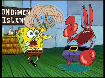 Quietschende Schuhe: Um Spongebob keinen Lohn zahlen zu müssen, schenkt ihm Mr. Krabs stattdessen ein paar quietschender Stiefel. Spongebob ist hocherfreut doch Mr. Krabs wird von den Stiefeln bald in den Wahnsinn getrieben.