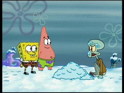 Die Schneeballschlacht: Spongebob und Patrick machen eine Schneeballschlacht, in die sich Thaddäus gezwungenermaßen einmischt. Schon bald findet er aber Gefallen an dem kalten Treiben. Witzige Weihnachtsfolge, die Erinnerungen an die Kindertage und die dazugehörigen Schneeballschlachten aufkommen lässt.