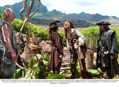 Während Teil 2 und 3 dem Prinzip „höher, weiter, schneller“ folgten, schaltet der neue Regisseur Rob Marshall mehrere Gänge runter und konzentriert sich auf die Ursprünge der Serie. Nämlich dem Abenteuerfilm mit leichten Fantasyeinschlag. Übermäßiger CGI Overkill bleibt einem also zum Glück erspart. Leider schien man auch zu denken, dass ohne CGI keine Action möglich wäre und verzichtete fast komplett darauf. Große Seeschlachten sucht man also vergebens. Nicht einmal die Fechtduelle können überzeugen und kommen ohne pfiffige Ideen daher und wirken einfallslos. Dies sorgt dafür, dass der ganze Film etwas ohne Höhepunkt dahinplätschert und einem nach dem Sehen nichts in Erinnerung bleibt.