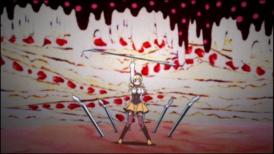 Wie viele Magical Girls Anime ist auch dieser mehr niedlich gehalten, bis zum Moment in dem man auf eine Hexe trifft. Danach wechselt der Stil drastisch und man findet sich in einer surrealen Welt wieder. Hier scheint die Kreativität der Animatoren keine Grenzen zu kennen. Zuständig für das Design dieser Welt waren das Künstler Duo Gekidan Inu Curry, welche schon beim Anime Bakemonogatari mit dem Anime Studio Shaft zusammen gearbeitet haben. Auch die Animationen in der Kämpfe sind auf hohem Niveau, besonders wenn Mami Tomoe ihre unzähligen Waffen zieht und den Hexen ordentlich zusetzt.