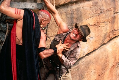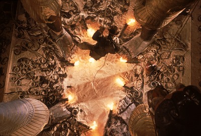 In „Der Tempel des Todes" verschlägt es Indy im zweiten Teil mit seinen kleinen Freund Short Round (Jonathan Ke Quan) und der Tänzerin Willie Scott (Kate Capshaw) nach Indien. Dort bekommen sie es mit den mysteriösen Sankara-Steinen und einer boshaften indischen Sekte zu tun, die alle Kinder aus den umliegenden Dörfern entführt und zur Sklavenarbeit verpflichtet haben. Das zweite Abenteuer hob sich dabei von den anderen Teilen etwas ab, da es hier um einiges düsterer zuging und der Humor zurückgeschraubt wurde. Zudem übernahmen dieses Mal nicht die Nazis den Gegenpart. Dadurch erhielt „Der Tempel des Todes“ auch als einziger Teil der Reihe eine FSK 16 Einstufung. Für viele nach dem vierten Abenteuer der schlechteste Indy Teil, aber selbst ein schlechter Spielberg ist noch immer ein guter Film. So bietet auch dieser Ausflug mit der spaßigen Eröffnungssequenz und der spektakulären Lorenfahrt denkwürdige Actionszenen.