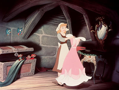 Disney's Version von Aschenputtel ist voll auf Erfolg getrimmt. Man nehme eine klischeebehaftetes Frauenbild in Not, fiese Gegenspielerinnen und einen knackigen Prinzen. Welches Mädchen kann bei solch einer Konstellation widerstehen? Damit man auch gleich weiß, was Sache ist, sind Cinderella, der Prinz und die fiese Stiefmutter die einzigen drei Charaktere, welche ein realistisches Aussehen besitzen. Alle anderen wurden teils stark überzeichnete. Aber auch die Hintergründe, welche aus der Feder der Künstlerin Mary Blair stammen heben sich ab. Diese wurden nämlich sehr einfach gehalten und sind weit von den pompösen Backgrounds von Schneewittchen und vor allen eines Pinocchio entfernt! Hier schlug wohl der rote Stift zu, da diese einfachen Hintergründe günstiger waren. Begeistern können dagegen die Animationen, welche butterweich und elegant sind. Natürlich darf auch wieder geträllert werden, wobei die Texte teils nicht klar verständlich sind. Komponiert sind sie jedoch sehr gut.