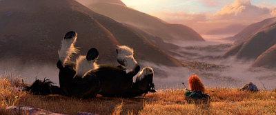 Wie von Pixar gewohnt, ist „Merida“ allerdings audiovisuell sehr stark umgesetzt. Die erste halbe Stunde, in denen die rauen schottischen Highlands vorgestellt werden, wurde erstklassig mit beeindruckenden Bildern in Szene gesetzt. Wenn Merida durch die Landschaften reitet und von einem Berg aus atemberaubende Panoramen auf dem Fernseher erscheinen, bleibt einem die Spucke weg. Aber auch die Animationen der Charaktere sind erstklassig geworden und überzeugen durch eine tolle Darstellung der Kleider und vor allem der feuerroten Haare unserer Hauptfigur. Dem optischen Hochgenuss steht der Soundtrack in nichts nach und überzeugt mit herrlichen schottischen Melodien.
