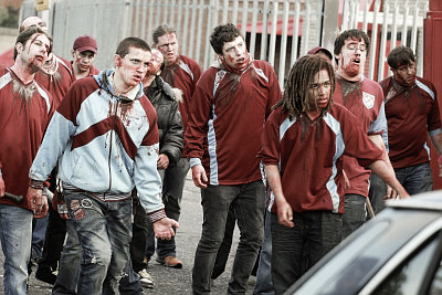 Ohne Umschweife arbeitet der Film Zielstrebig auf das erwartete Ende hin und nach dem Abspann bleibt das Gefühl, dass etwas fehlte. Zwar ist der Einzug von mehr oder weniger rüstigen Rentnern ein gelungener Einfall, doch leider kommen diese erst kurz vor Schluss zum Zug und spielen davor nur mit einigen mehr oder weniger guten Gags eine unbedeutende Rolle. So läuft „Cockneys vs. Zombies“ meist in gewohnten Zomedy Genre Bahnen ab und geht dabei auf Nummer sicher. Immerhin kommt es immer wieder mal zu einigen coolen, meist typisch Britisch und schwarzhumorigen Gags. Hier z.B. die Zombie Hooligans, welche sich sogar untot noch bekriegen oder ein alter Rentner, welcher gemütlich auf seinem Gartenstuhl döst, während die Apokalypse um ihn herum ausbricht.