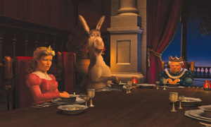 Einige Gags, wie z.B. die Alien oder Indiana Jones Verarsche oder das Sir Justin Plakat (Ex-Freund von Cameron Diaz, welche Fiona die Stimme im englischen Original leiht), werden dem Otto-Normal-Zuschauer jedoch verborgen bleiben. Aber das ist nicht weiter schlimm, da es genügen offensichtliche Witze gibt. Wie z.B. auch alltägliche Probleme wie fehlender Zahnersatz beim Arbeitnehmer oder eine Reality Showeinlage einer Polizeiverfolgungsjagd inklusive Pfefferstreuer und Katzenshit. Mehr will ich jedoch nicht verraten, da sonst auch die Überraschungseffekte fehlen. Der heimliche Star des Erstlings war ja eigentlich immer der Esel. Dieser bekommt nun in Form des gestiefelten Katers Konkurrenz, was er auch gleich zur Sprache bringt. Denn wie sagte er so schön: „Die Rolle der sprechenden Nervensäge ist schon besetzt!“.