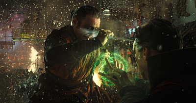Neben der für Marvel Filme überraschend gelungenen Ausarbeitung der Hauptcharaktere ist es aber vor allem die optische Inszenierung des Filmes, welche einem bei der Stange hält. Klar, man könnte dem Film vorwerfen, dass er sich zu oft an “Inception” bedient, aber who cares? Die Umsetzung bietet genügend eigene Ideen und diese sind überaus bombastisch. Wenn die Protagonisten durch Portale springen, sich die Welt spiralförmig verformt oder sich die Spiralkörper von Strange und Kaecilius bekämpfen während Strange im Krankenhaus behandelt wird, sind schon sehr beeindruckend. Das Highlight ist dann auch der Endkampf, der wie schon bei “Ant-Man” in eine andere Richtung als gewohnt geht. Während sich die bisherigen Marvel Filme in vielen Szenen nicht sonderlich ernst nehmen, wird der Humor bei Doctor Strange etwas zurückgefahren. Klar, es gibt noch einige One Line und durch das Cape etwas Situationskomik, doch letztendlich ist es keine Komödie mit Actionszenen. Neben zwei kleineren Querverweisen und der üblichen Post-Credit-Szene gibt es übrigens noch keine große Verbindung zwischen den anderen Filmen des MCU.