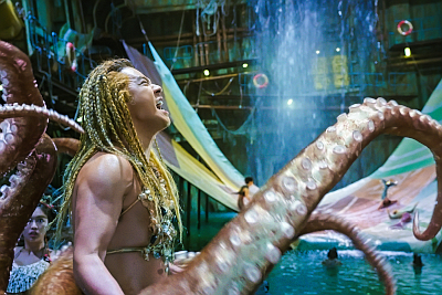 Neben Gags, wo sich Onkel Octopus zum Beispiel selbst kochen muss, oder ein Jetpack Amok läuft gesellen sich auch immer wieder Szenen, wo einem das Lachen im Halse stecken bleibt. Diese Übergänge sind nicht nur fließend sondern vermischen sich auch mit den Slapstickeinlagen. Hier sieht man zum Beispiel reale Szenen von Massakern an Meerestieren und auch brutale Actionszenen, wo die Meeresmenschen gnadenlos und brutal abgeschlachtet werden. Diese Vermischung ist typisch für das asiatische Kino und wird fast in jedem Film verwendet. Dadurch kommt auch die FSK 12 Einstufung zustande, den der eigentliche RomCom Part ist typisch chinesisch eher kindlich und harmlos geraten. Noch ein paar letzte Worte zu den Spezialeffekten aus dem Computer. Auch diese sind asiatisch typisch eher durchwachsen, völlig abgehoben und als Computereffekte leicht zu erkennen.