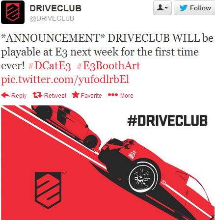 Via Twitter gaben die Entwickler, Evolution Studios, bekannt, dass das kommende PS4 exklusive Rennspiel Drive Club auf der E3 Videospielmesse nächste Woche spielbar sein wird. WIr dürfen also auch mit Gameplaymaterial rechnen.
