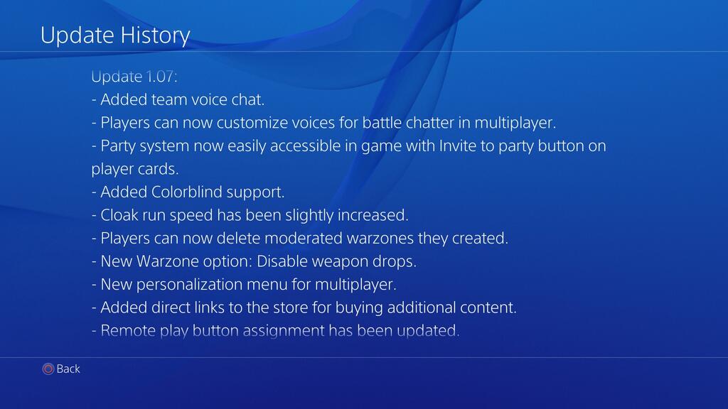 Ein neuer 229MB großer Patch auf Version 1.07 ist für Killzone: Shadow Fall erschienen. Neben typischen Bugfixes gibts auch ein paar Verbesserungen. Zum Beispiel gibt es nun Team-basierten Voice-Chat und überarbeitete Anpassungsoptionen im Multiplayermodus.