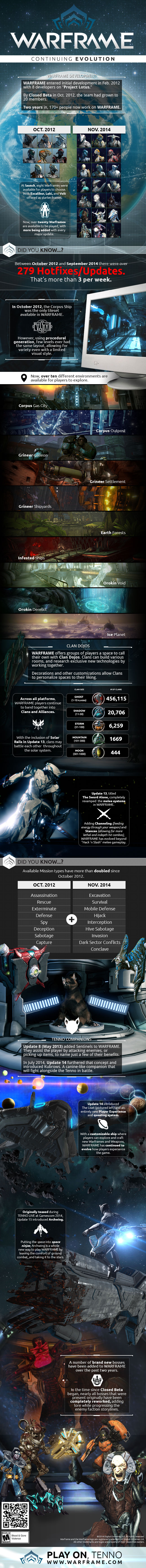 Auch wenn es das Free 2 Play Actionspiel Warframe erst seit einem Jahr auf PlayStation Plattformen existiert, so gibt es den Titel doch schon seit 2 Jahren auf dem PC. Entwickler Digital Xtremes hat dazu eine umfangreiche Informationsgrafik veröffentlicht.