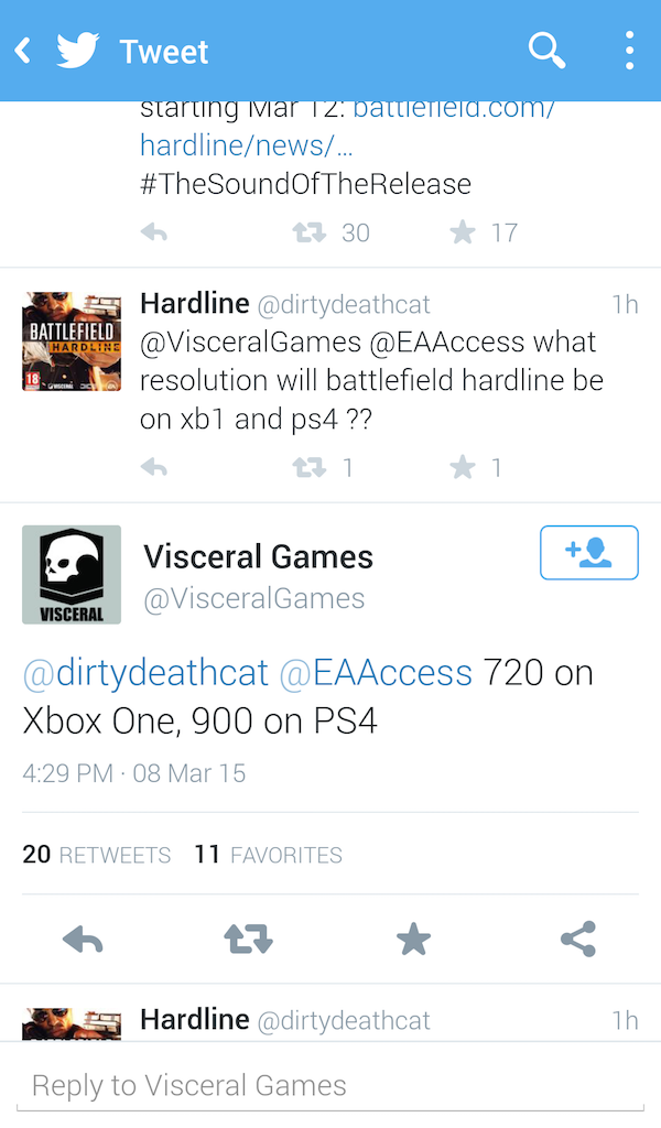 Auf der PlayStation 4 schaffen mittlerweile die meisten Spiele eine Auflösung von 1080p bzw. FullHD. Leider gibt es hin und wieder ein paar unschöne Ausnahmen, wie es jetzt der Fall bei Battlefield: Hardline ist. Wie die Entwickler auf twitter nämlich bestätigt haben, läuft das Spiel wie im Vorfeld vermutet nur mit 900p auf der PlayStation 4. Auf der Xbox One schafft man sogar nur 720p.