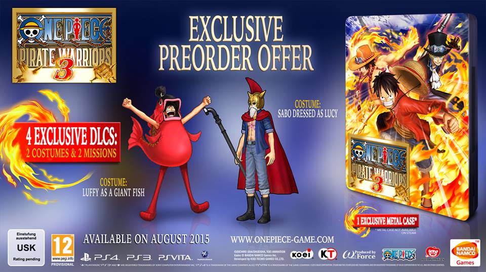 Wenn One Piece: Pirate Warriors 3 im August für PS3, PS4 und Vita (ja, dieses mal auch bei uns für die Vita!) erscheint, können Spieler neben der normalen Version noch zwei andere auswählen. Einmal gibt es für Vorbesteller exklusiven Zugriff auf zwei Kostüme und zwei Missionen, sowie ein Steelbook. Wer es etwas kostspieliger mag, kann auch zur Collector`s Edition greifen. Diese ist PS3 und PS4 exklusiv und enthält noch eine 16cm hohe Figur von Doflamingo.