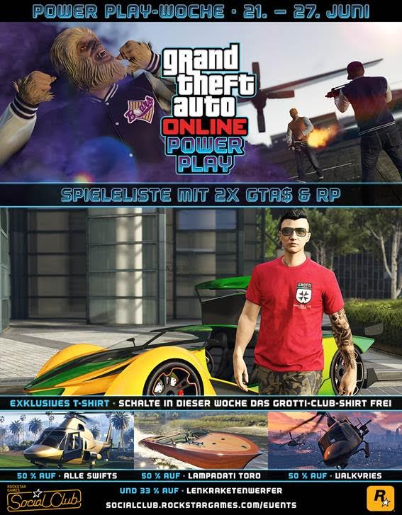 Jeder Spieler kann immer nur ein Power-up einsetzen. Dennoch existieren verschiedene Strategien, indem Teammitglieder Power-ups kombinieren oder man sie auslöst, um gegnerische Effekte zu kontern. Spielt diesen neuen Gegner-Modus jetzt über das Job-Menü oder schnappt euch eure besten Schützen und Strategen, um die ganze Woche über in "Power Play"-Spielelisten die maximale Menge an doppelten GTA$ und RP abzuräumen.