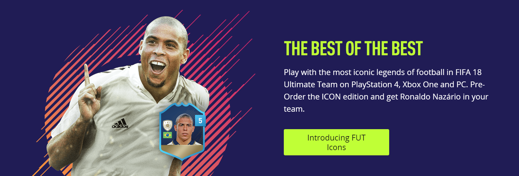 Wie bereits vermutet, springt die Marketing-Partnerschaft für FIFA 18 von Microsoft auf Sony herüber und somit kommen erstmals auch PlayStation 4 Spieler in den Genuss der Legends Karten, die auch gleich für eine Vorbestelleraktion genutzt werden, da man so an Ronaldo (den Brasilianer) kommen kann. Neuerdings heißen sie übrigens Icons. Es gibt auch eine Ronaldo Edition (der Portugiese von Real Madrid) des Spiels, womit man das Spiel drei Tage eher spielen kann.