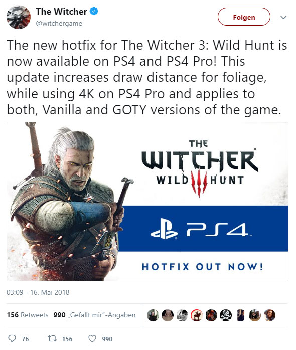 CD Project Red hat endlich einen Hotfix für The Witcher 3 bereitgestellt, der das Problem mit der niedrigen Draw-Distance (also der Entfernung, in der Objekte in der Landschaft auftauchen) beheben soll. Seit dem letzten HDR-Update ist diese nämlich extrem niedrig gewesen, was viele Spieler extrem gestört hat.