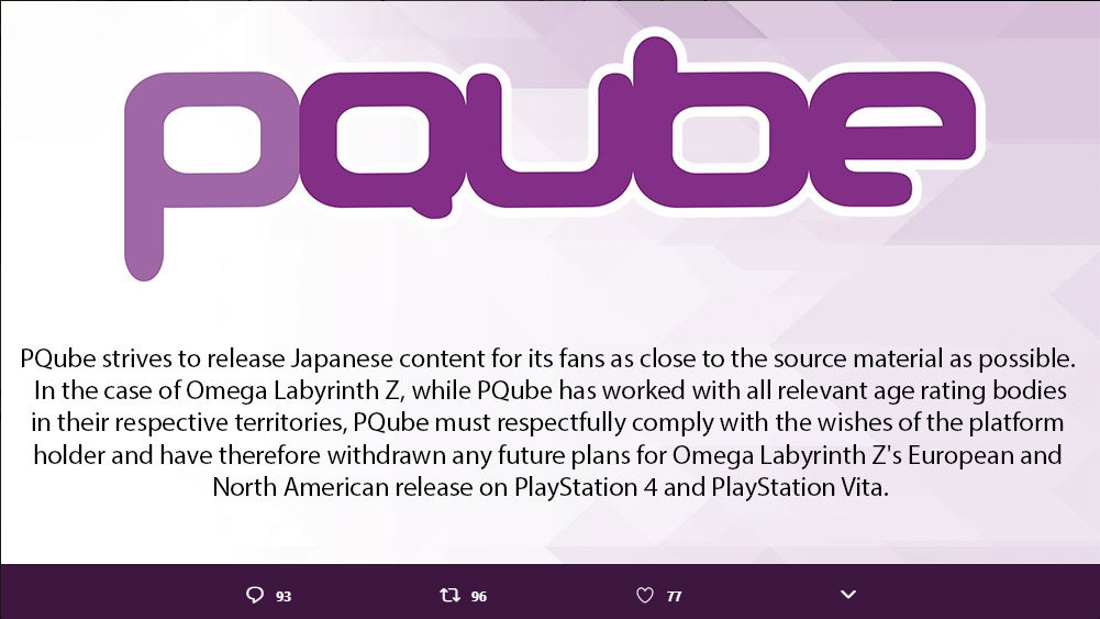 Publisher PQube hatte gegen Ende letzten Jahres angekündigt, das Rougelike Rollenspiel Omega Labyrinth Z für die PS4 und Vita in diesem Jahr nach Europa zu bringen. Das sollte kein leichtes Unterfangen werden, da das Spiel einige Features besitzt, die man ruhig als "versaut" bezeichnen kann. Doch nun wurde der Release gestoppt, aber nicht durch Jugendschutzbehörden wie der USK oder ESRB, sondern wohl durch den Plattform-Halter selbst - Sony, denn laut Aussage vom Publisher möchte man das Spiel hierzulande nicht im PSN-Store (oder im Laden) sehen. Verkehrte Welt, wurde der Titel doch problemlos in Asien veröffentlicht.