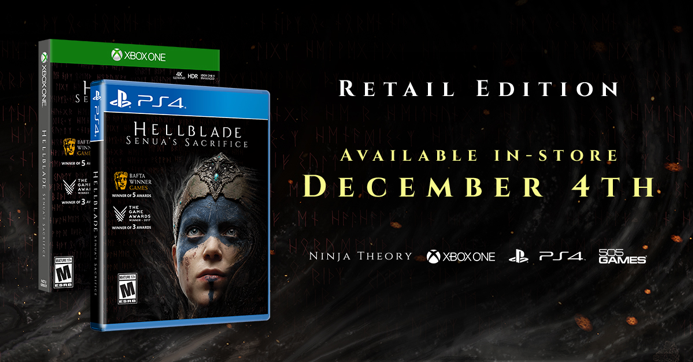Der Indie-Publisher 505 Games hat angekündigt, pünktlich zum Weihnachtsfest eine Disc-Version von Hellblade: Senua’s Sacrifice in den Handel zu bringen - genauer gesagt am 04. Dezember 2018 und zwar zum Preis von €29,99.
