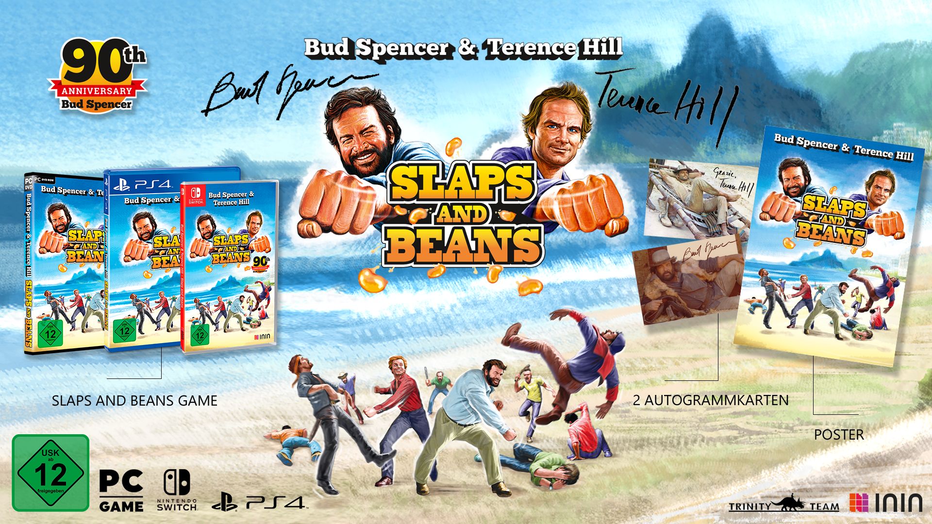 Zum 90. Geburtstag des verstorbenen, legendären Film-Helden Bud Spencer am 31. Oktober kann die spielerische Prügel-Hommage Bud Spencer & Terence Hill: Slaps and Beans des Schauspieler-Duos in der 90th Anniversary Edition für 29,99 EUR vorbestellt werden. Die 90th Anniversary Edition wird ab dem 13. Dezember exklusiv im Einzelhandel erhältlich sein und enthält neben dem Spiel zwei gedruckte Autogrammkarten sowie ein Poster.