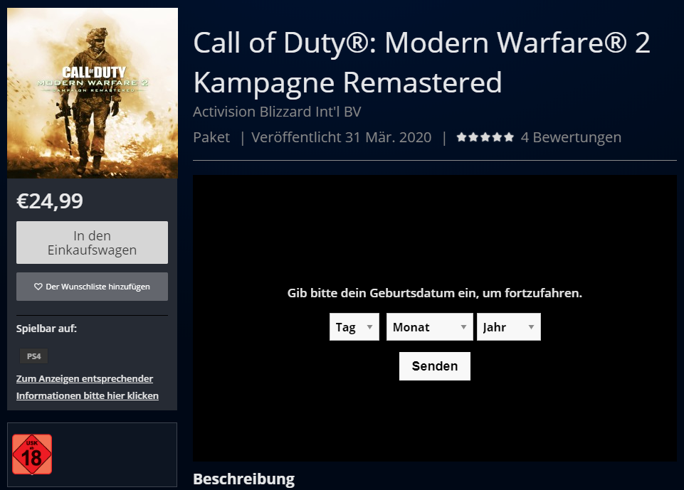 Es sieht so aus, als ob Activision Blizzard morgen bereits die remasterte Kampagne von Call of Duty: Modern Warfare 2 auf die Menschheit loslassen wird. Für 25€ bekommt man jedoch nur den Einzelspieler-Modus geboten und noch ein paar Extras, die man im aktuellen "Modern Warfare" bzw. in "Call of Duty: Warzone" nutzen kann.