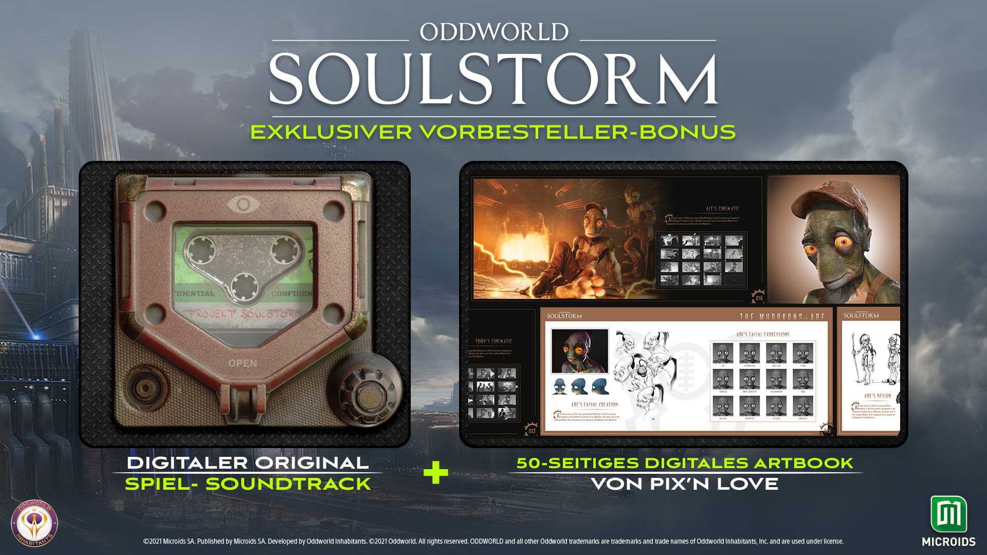 Die physischen Editionen des Spiels für die PlayStation 5 und die PlayStation 4, die im Fall von Oddworld: Soulstorm getreu dem Namen der Spielereihe mit „Odditions“ betitelt wurden, werden ab 6. Juli 2021 im Handel erhältlich sein. Sowohl die Day One Oddition, als auch die Collector Oddition können bereits jetzt bei teilnehmenden Anbietern vorbestellt werden.