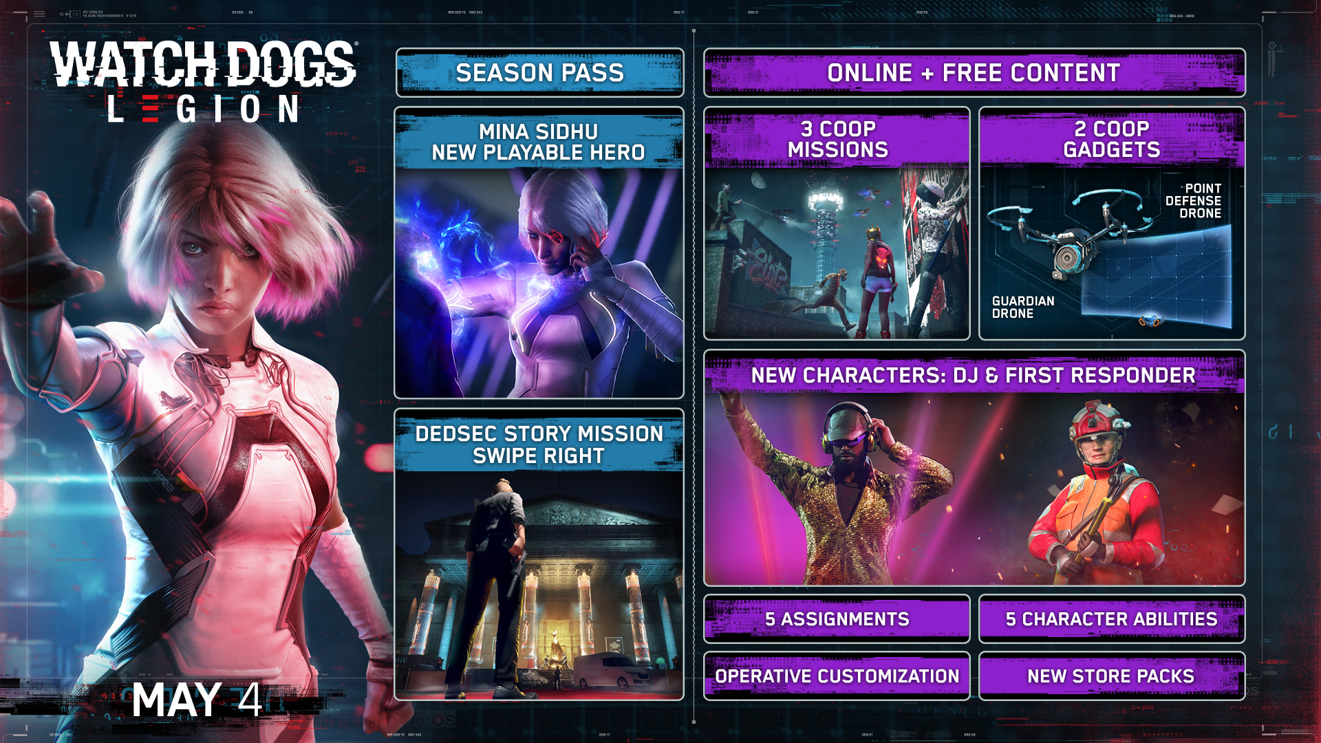 Darüber hinaus hat Ubisoft als Teil der Pläne für die Zeit nach dem Launch von Watch Dogs: Legion im Jahr 2021 die Verfügbarkeit der kostenlosen Inhalte für alle Spieler von Watch Dogs: Legion sowie die neuen, exklusiven Inhalte für Season-Pass-Besitzer im Einzelspieler- und Online-Modus detailliert beschrieben.