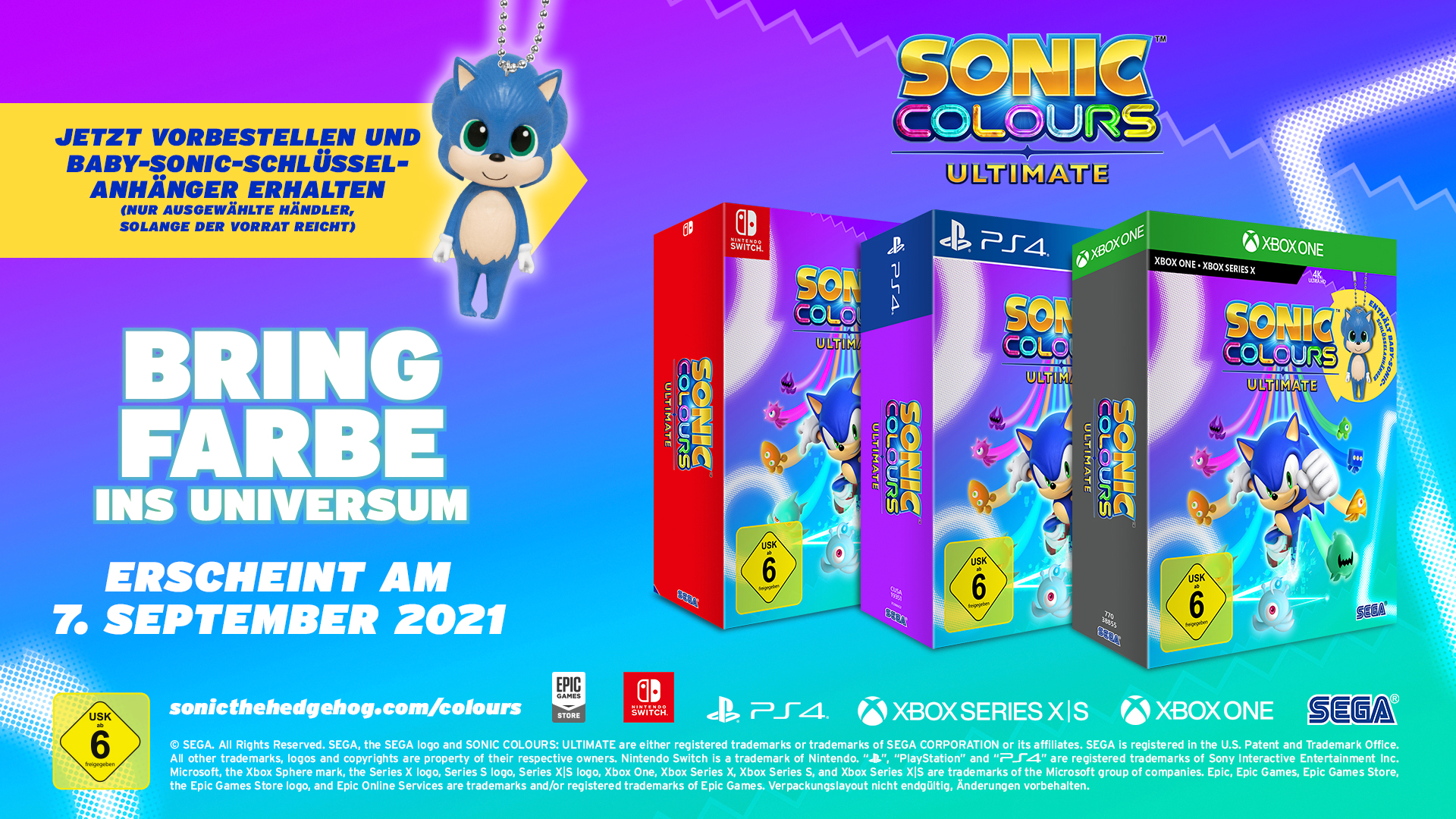 Sonic Colors: Ultimate: das Update des Klassikers erscheint am 7. September für PS4 (Die Handelsversion enthält darüber hinaus einen exklusiven Baby-Sonic-Schlüsselanhänger.)