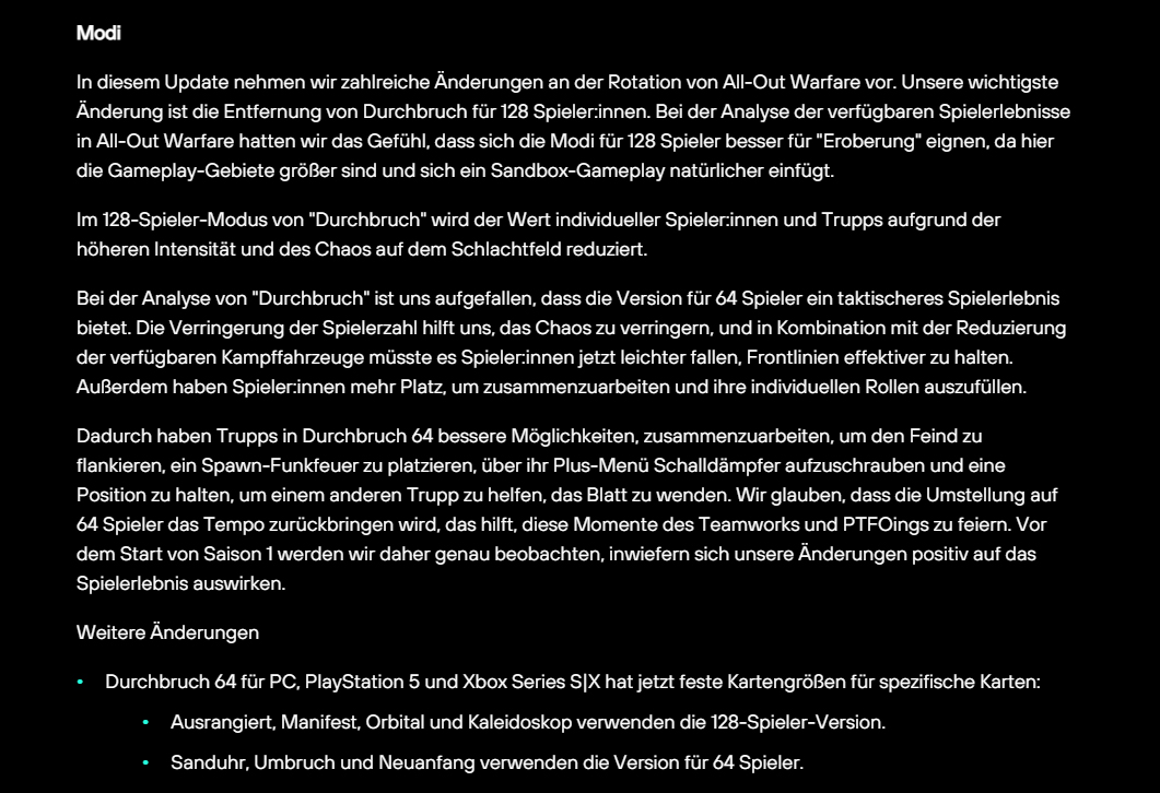 DICE wird mit dem neuen Update 4.1, das morgen online geht, wieder viele Änderungen und Anpassungen vornehmen. Die kompletten Patch Notes gibt es hier. Allerdings fällt auf, dass DICE beim "Durchbruch" Spielmodi die Spieleranzahl verringert. Statt der ursprünglichen 128 Spieler, werden dann nur noch 64 Spieler zugelassen. Diese Änderung trifft aber nicht auf den Eroberungs-Spielmodus zu, dort sind weiterhin 128 Spieler erlaubt.