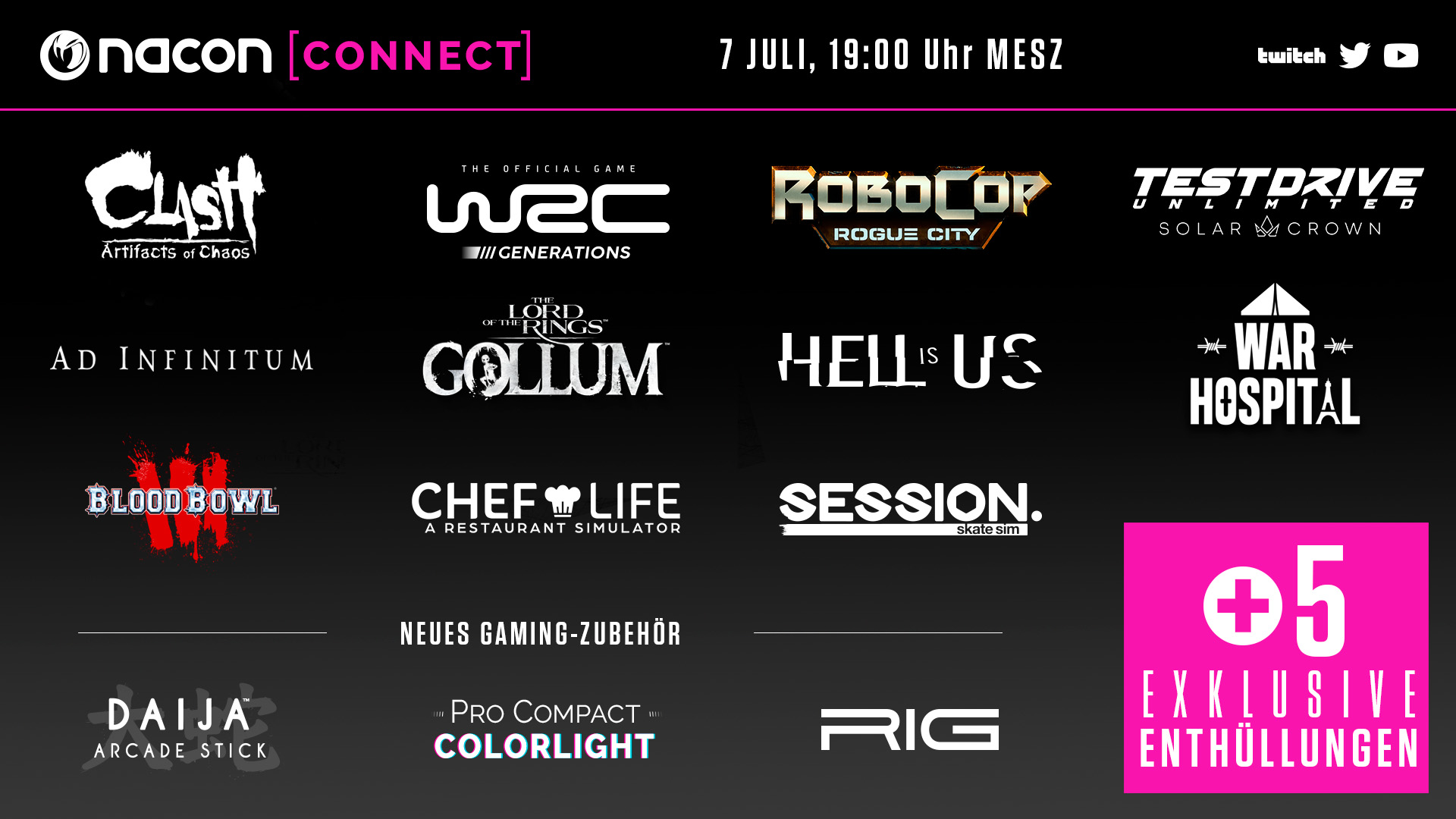 Nacon hält morgen am 07. Juli 2022 seine jährliche Online-Konferenz Nacon Connect ab. Übertragen wird die Konferenz auf Nacons offiziellem Twitch- und YouTube-Kanal.