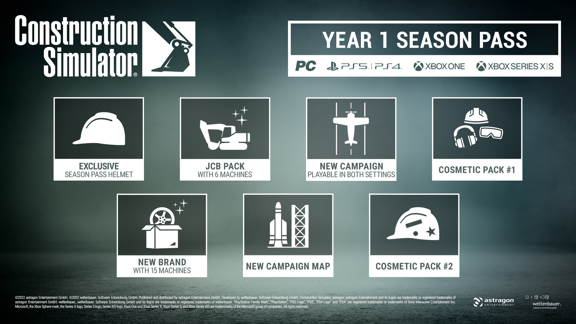 Gute Nachrichten für Fans schwerer Baumaschinen: Mit dem Bau-Simulator – Year 1 Season Pass bieten Astragon Entertainment und Weltenbauer. Software Entwicklung ab heute die Möglichkeit, alle für das Jahr #1 geplanten kostenpflichtigen DLCs zur Bau-Simulation samt exklusivem Zusatzinhalt und einem lukrativen Preisvorteil zu erwerben.