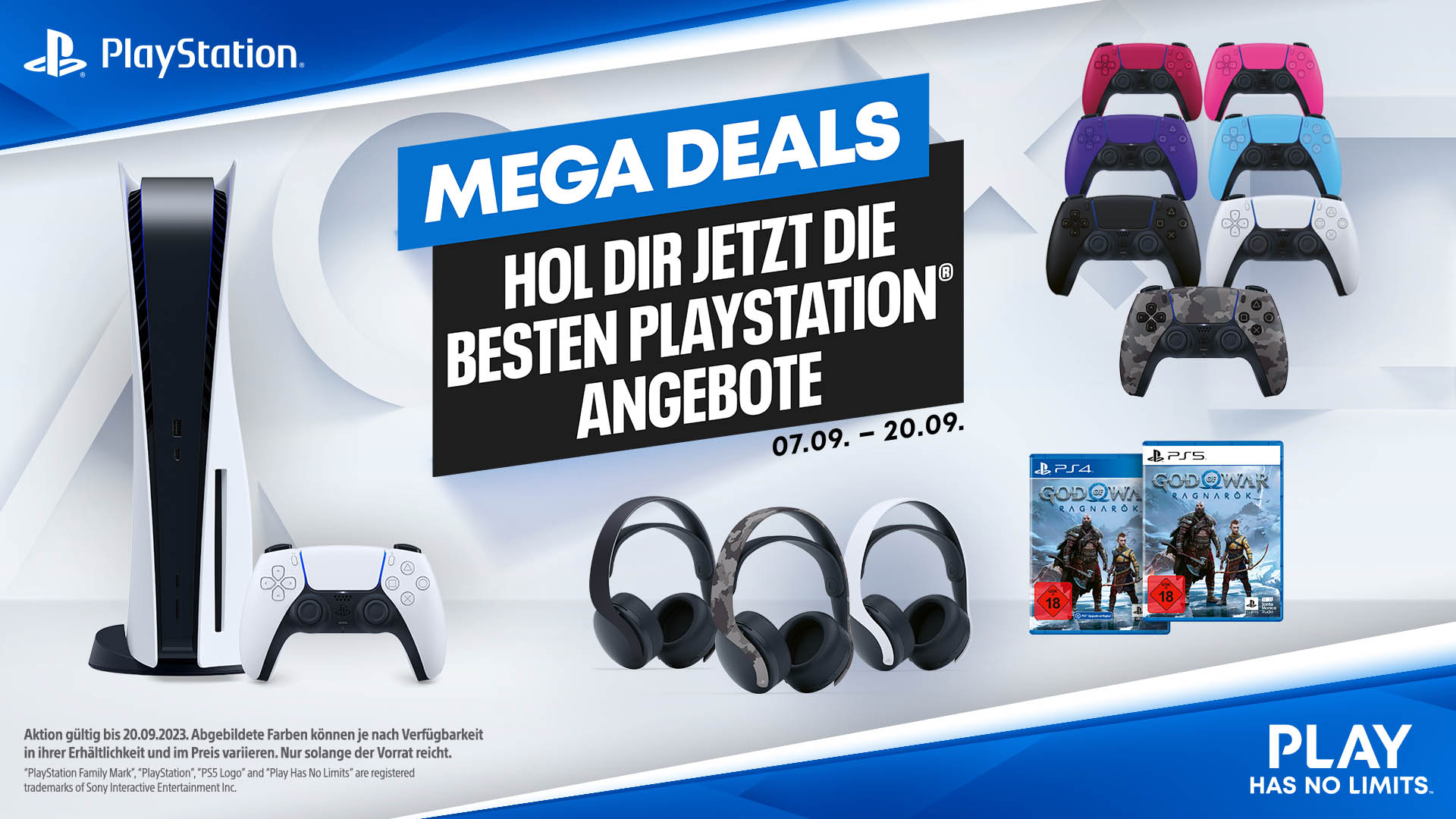 Neben der Konsole werden bei teilnehmenden Händlern im Rahmen der Aktion auch offizielles PS5 Zubehör sowie zahlreiche Spieletitel vergünstigt angeboten. Darunter der DualSense Wireless-Controller, das Pulse 3D Wireless-Headset und Spiele wie God of War Ragnarök, Horizon Forbidden West und Gran Turismo 7.