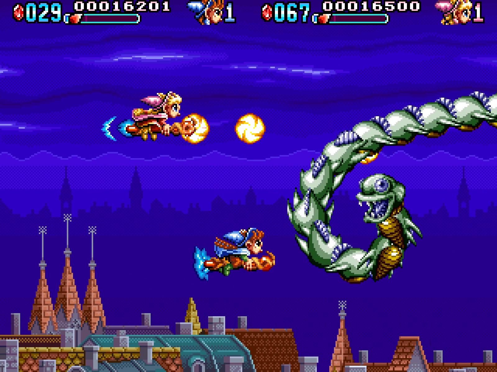 Du bist ein Zauberer, Harry! Das Arcade-Shoot 'em up Mystic Riders aus dem Jahr 1992 nimmt dich mit auf eine magische Reise, die sich von IREMs üblichem düsteren und herausfordernden Shoot 'em up-Stil abhebt. Dieses Shmup wurde von demselben Team entwickelt, das uns auch das heitere Daiku no Gen-san (Hammerin' Harry) beschert hat und entführt uns in eine Welt der Fantasie und Magie, weit entfernt von den biomechanischen ''Albträumen'' seiner Vorgänger. Schlüpfe in die Rollen der zwei unbeschwerten Charaktere, dem Zauberer Mark und der Hexe Zeal, und mach dich auf ins (möglicherweise kooperative) Abenteuer! Stelle dich, auf deinem Besenstil reitend, riesigen Himmelsschildkröten, Geistern, Sensenmännern, Drachen und andere mystische Kreaturen. Schleudere deinen Besen wie einen Boomerang, um Geschosse abzublocken, oder führe eine frühe Version der Ausweichrolle aus, eine Bewegung, die heute in Spielen mehr als üblich ist. Mystic Riders ist ein wahres Juwel im Shoot 'em up Genre und ein höchst unterhaltsames Koop-Erlebnis, das ihr euch nicht entgehen lassen solltet!