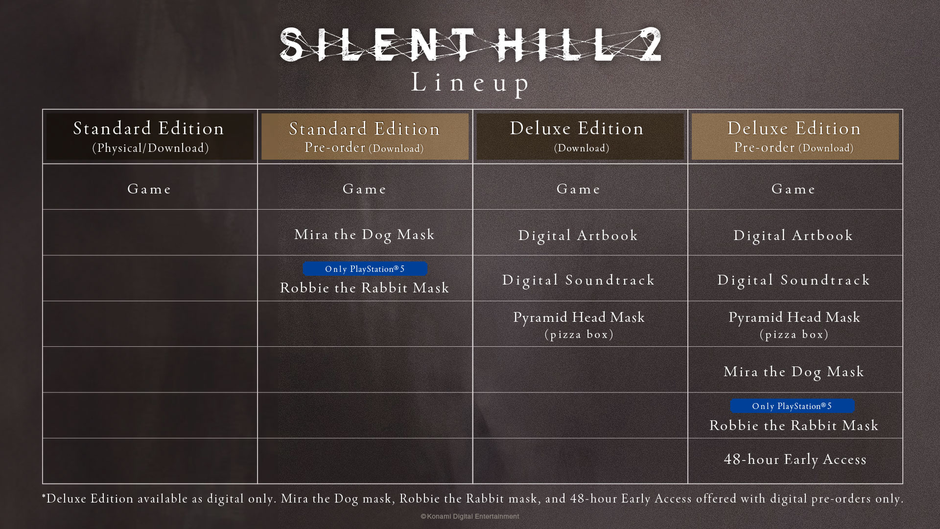 Die Schuldgefühle, die Trauer und der existenzielle Horror von James Sunderland können nun neu erlebt werden. James erkundet die Stadt Silent Hill - den besonderen Ort, den er und seine verstorbene Frau Mary immer besucht haben - eine symbolische Kulisse, die nun in Nebel gehüllt ist. Das Remake erweitert die Gebiete, die der Spieler erkunden kann, führt eine Schulterperspektive ein, überarbeitet das Kampfsystem und fügt neue Zwischensequenzen hinzu, um neuen und wiederkehrenden Spielern verschiedene Möglichkeiten zu bieten, das Spiel zu erleben. Was wartet in den nebelverhangenen Gassen und Korridoren von Silent Hill?