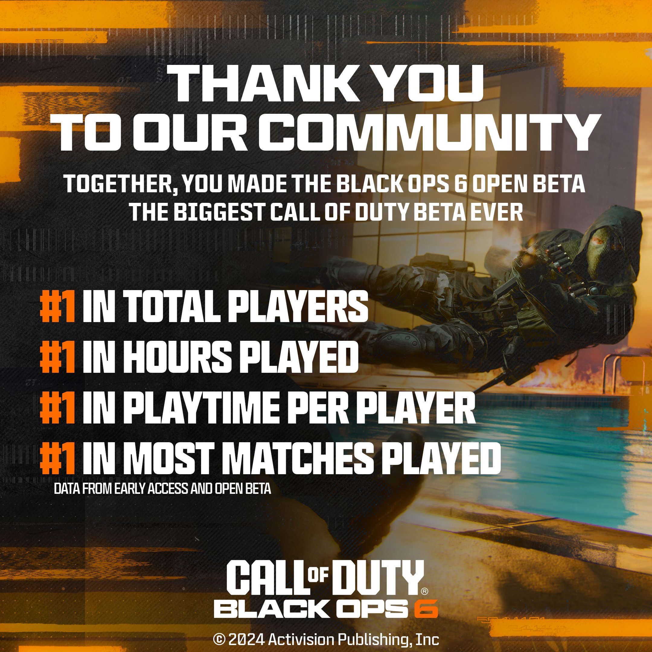 Die Open Beta-Phase von Call of Duty: Black Ops 6 schließt mit überragendem Erfolg. Activision ist besonders stolz darauf, denn die Community konnte nicht weniger als vier High-Scores verzeichnen: Anzahl der Spieler, der gesamten Spielstunden, Spielzeit pro Spieler und zuletzt für die meistgespielten Matches.