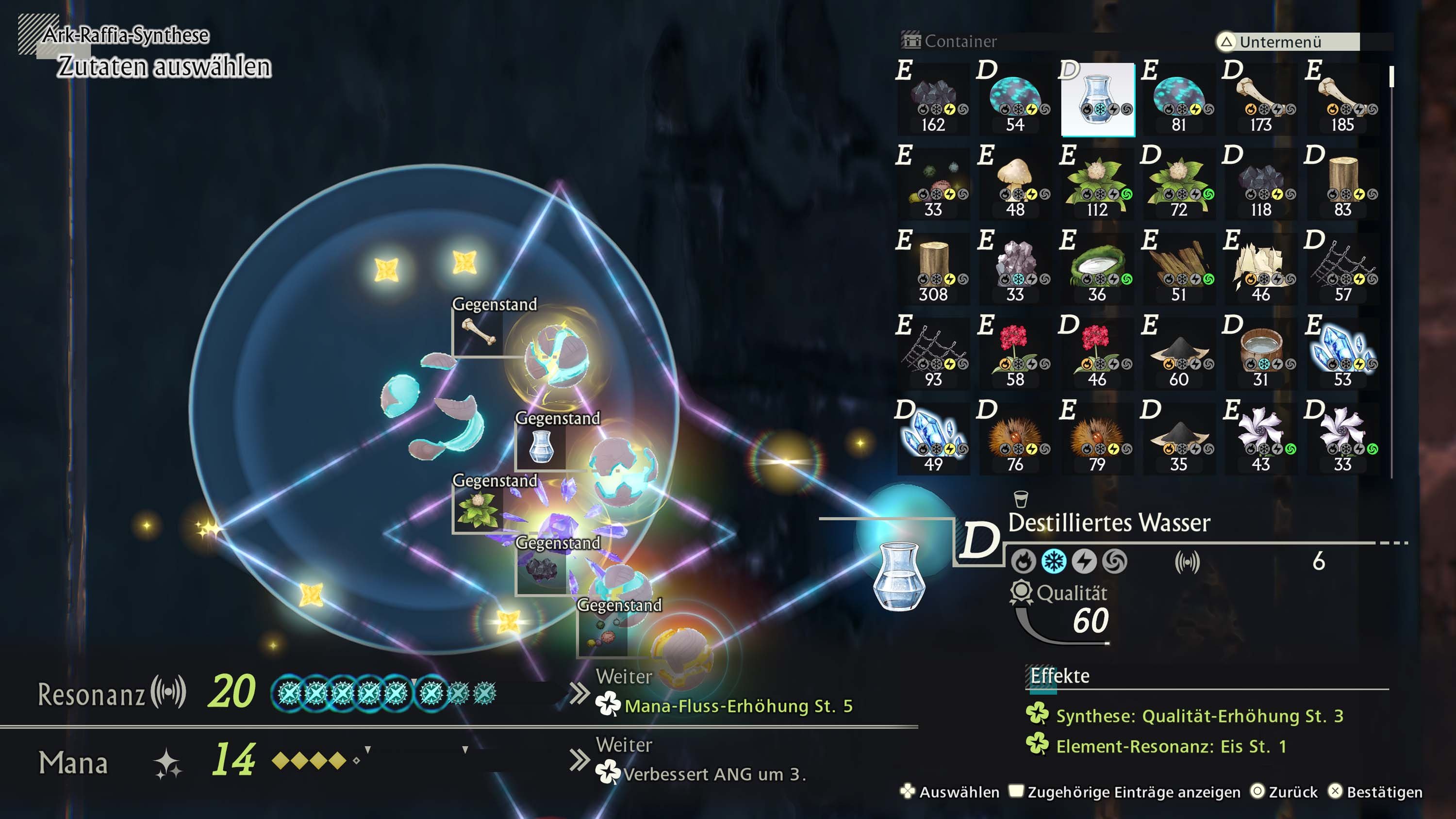 Um sich auf das bevorstehende Abenteuer vorzubereiten, werden die Spieler das bekannte Synthese-System in einer neuen Form wiederentdecken. Mit der Manipulation von „Mana“ werden neue Gegenstände erschaffen, die im Kampf oder bei der Erkundung helfen. Um mächtigere Gegenstände zu erschaffen, wird die Kunst der „Resonanz-Synthese“ genutzt. Zutaten, die miteinander in Resonanz stehen, werden zum „Alchemiekern“ des Rezepts hinzufügen. Wie stark die Resonanz ist, hängt von der Qualität der ausgewählten Zutaten ab.