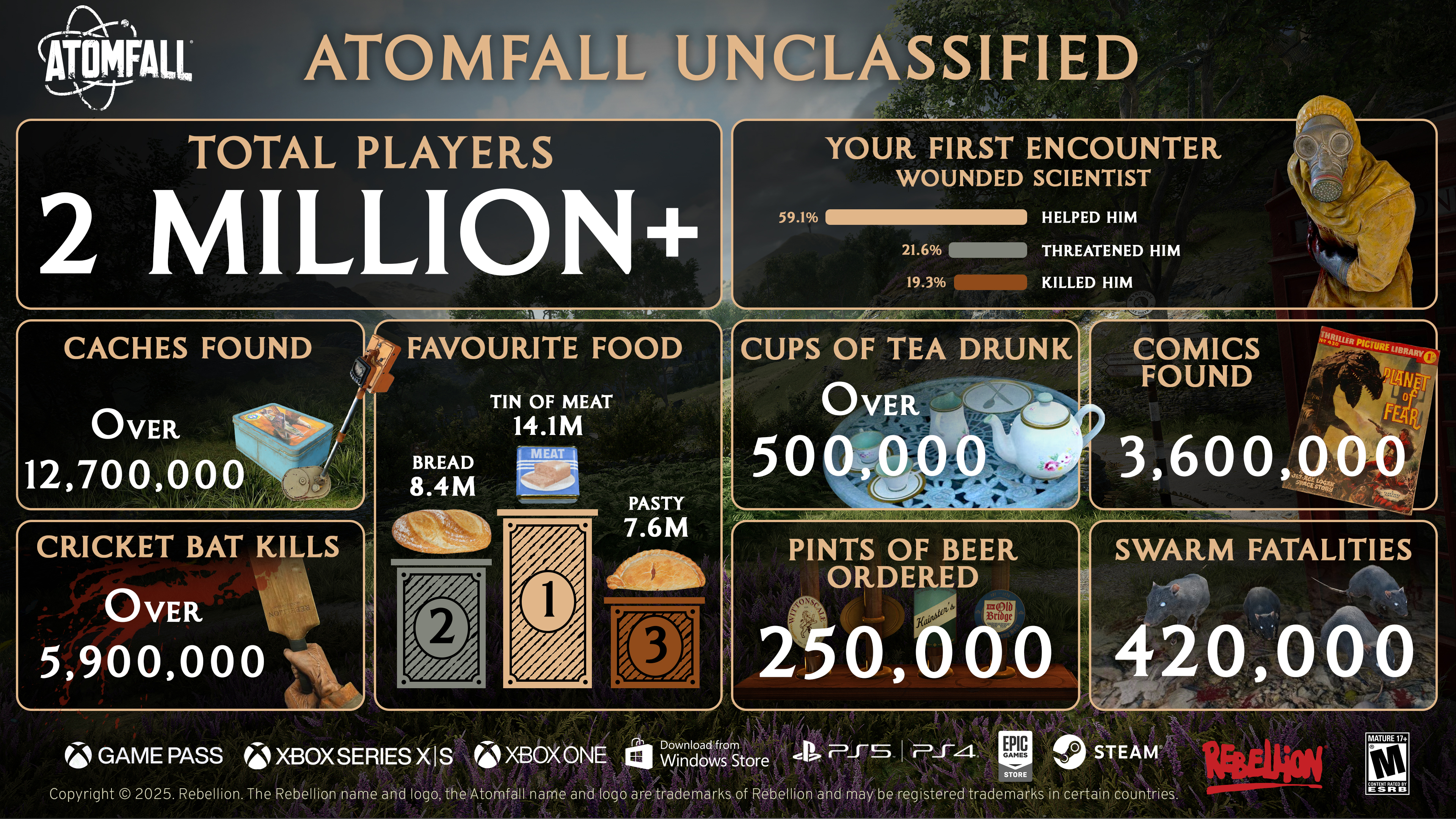 Das postnukleare Großbritannien hat eine gewaltige Strahlkraft – mehr als 2 Millionen Spieler haben sich bereits in die mysteriöse Quarantänezone von Atomfall gewagt, dem düsteren Survival-Game von Rebellion. Aus diesem Anlass hat der unabhängige Publisher und Entwickler einige In-Game-Statistiken veröffentlicht – und die lesen sich very british.
