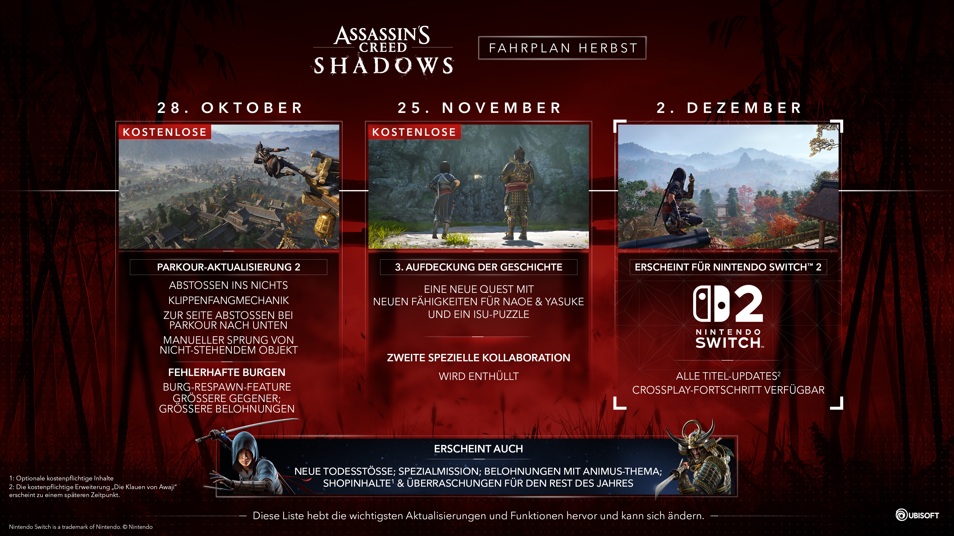 Ubisoft veröffentlichte die Roadmap für den Herbst für Assassin`s Creed Shadows und ein neues Video, in dem die Entwickler auf die Inhalte eingehen, auf die sich die Fans in den kommenden Monaten freuen können.